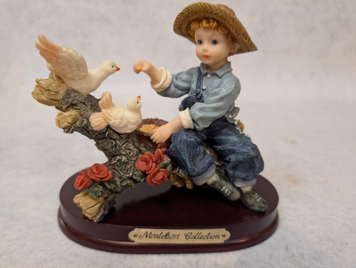 Vintage Montefiori Figurine Boy feeding Birds
