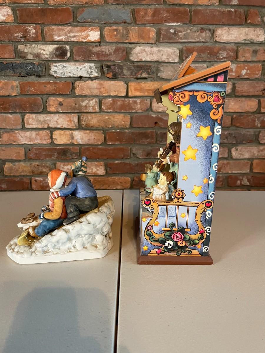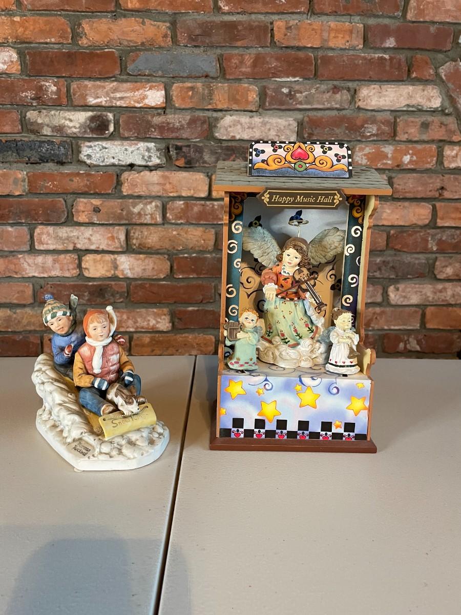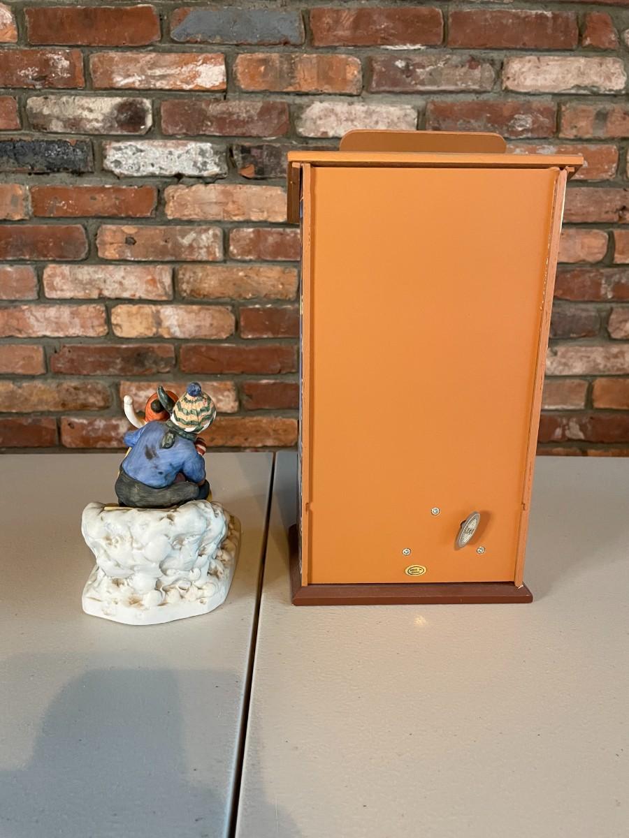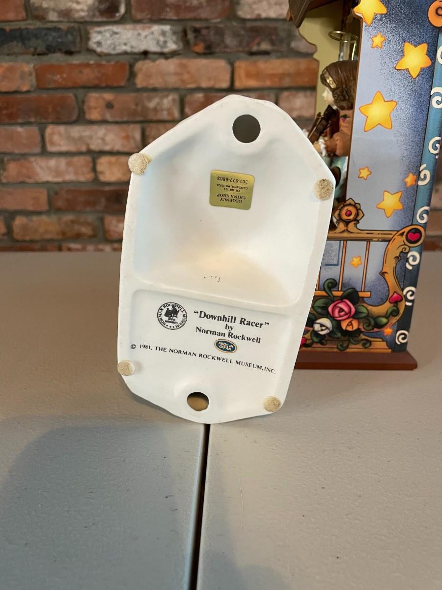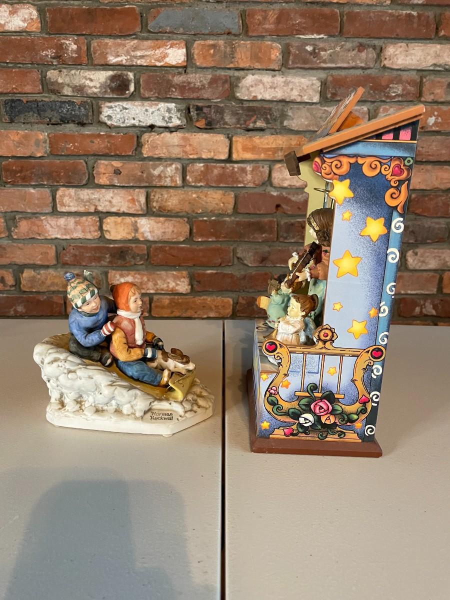 Vintage Montgomery Ward Wooden Christmas Music Box. Vintage Norman Rockwell “Downhill Racer” Figurine