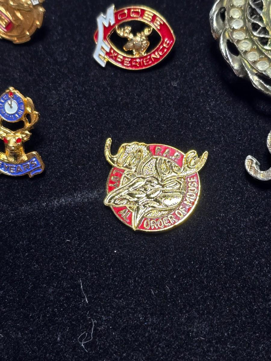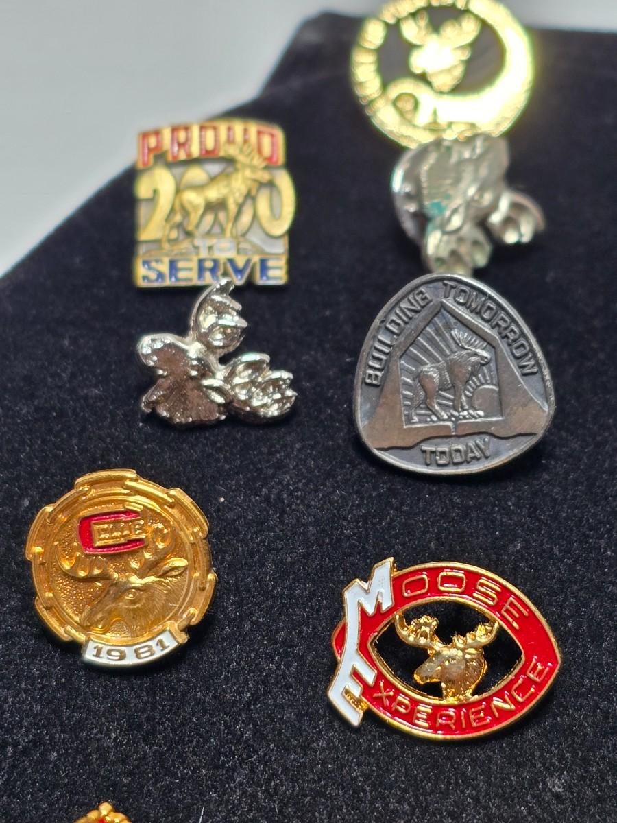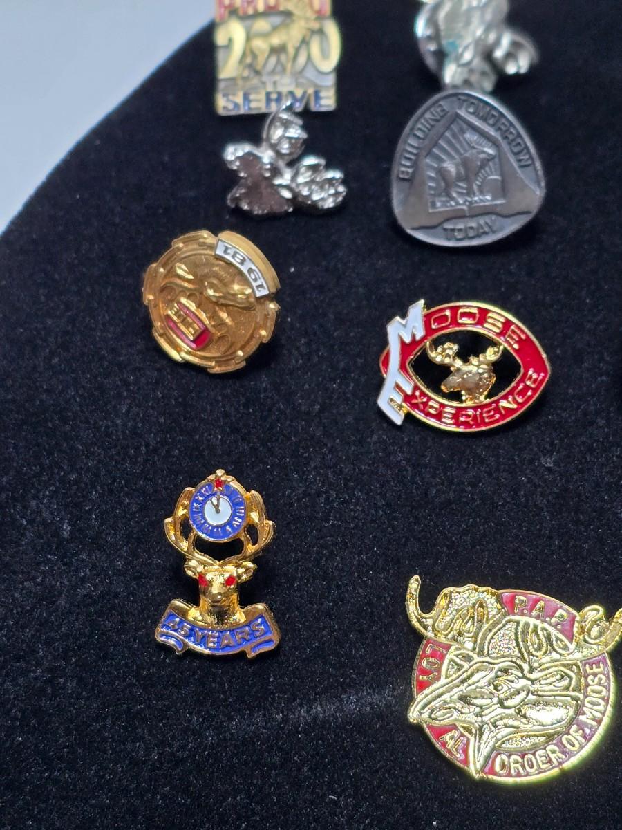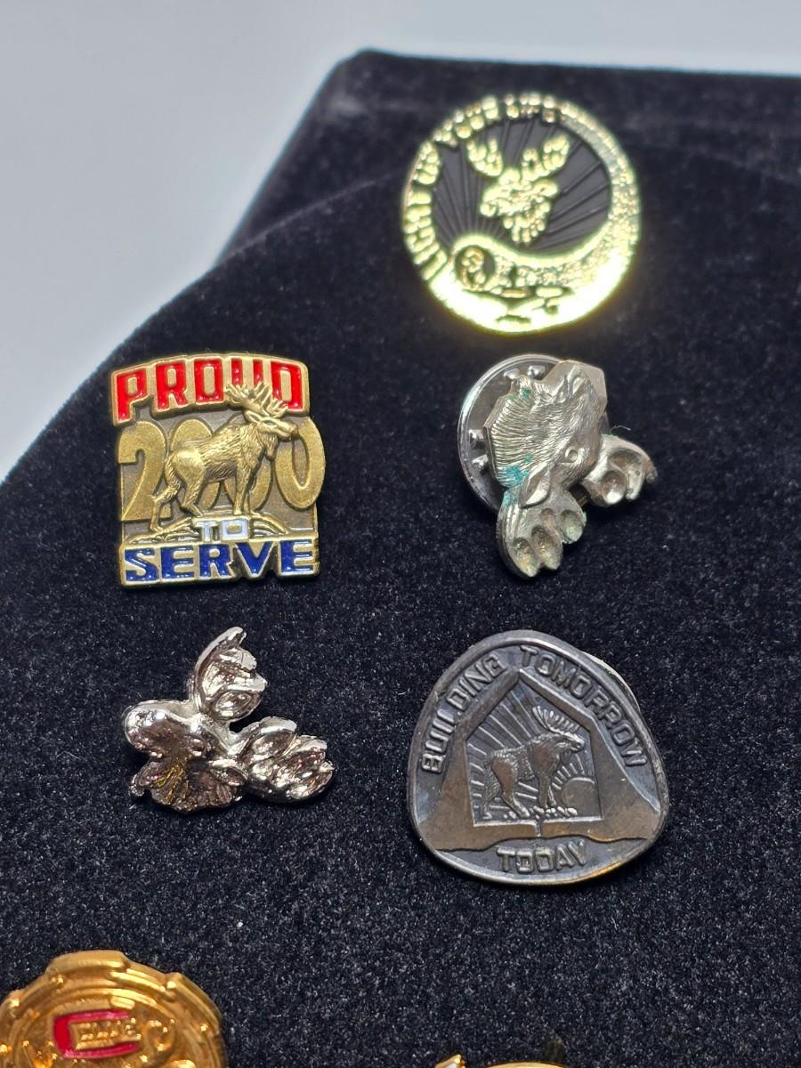 Vintage Moose Lodge hat pins with bolo tie with unique gold color coin back - Annual pins - Award pins - Collectibles
