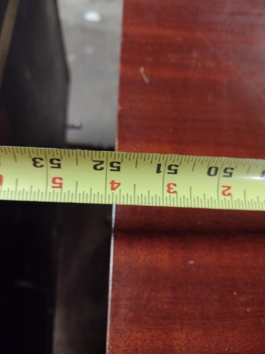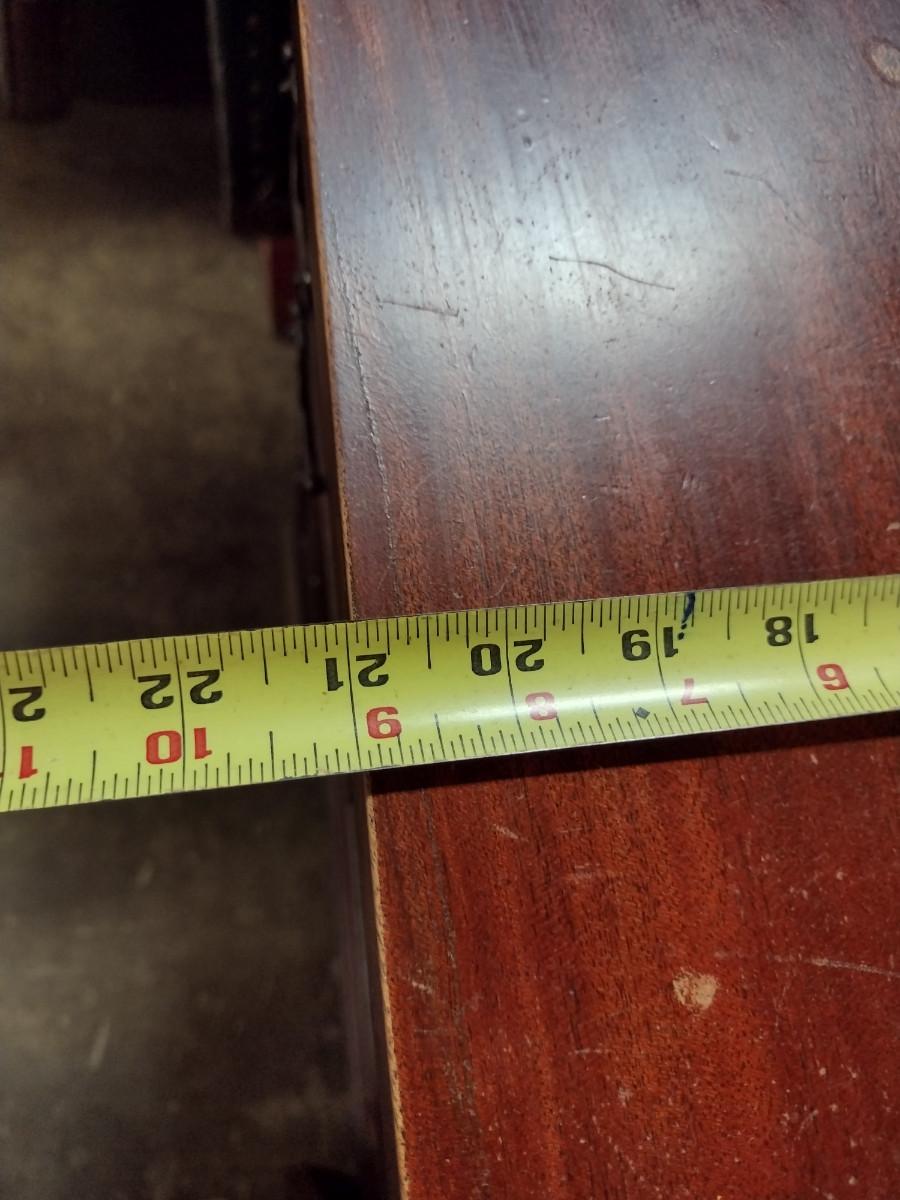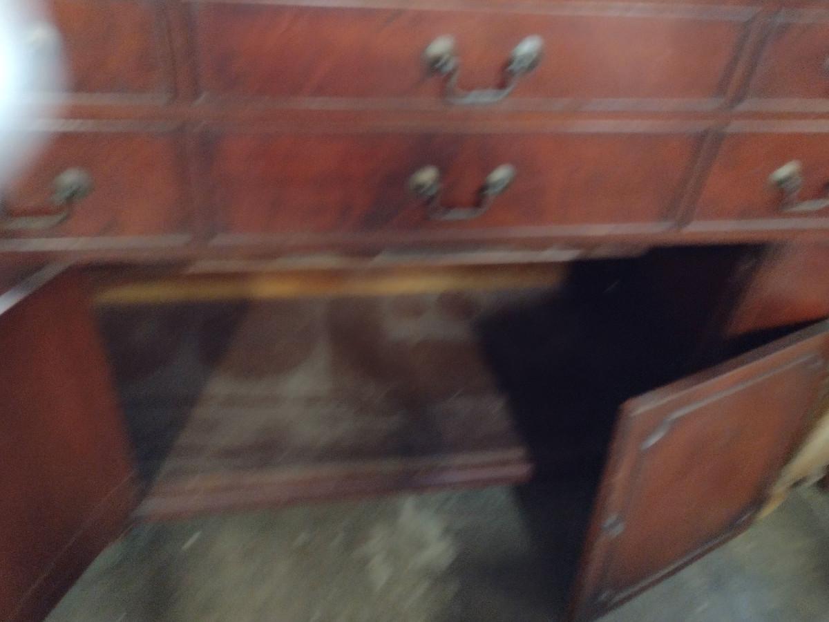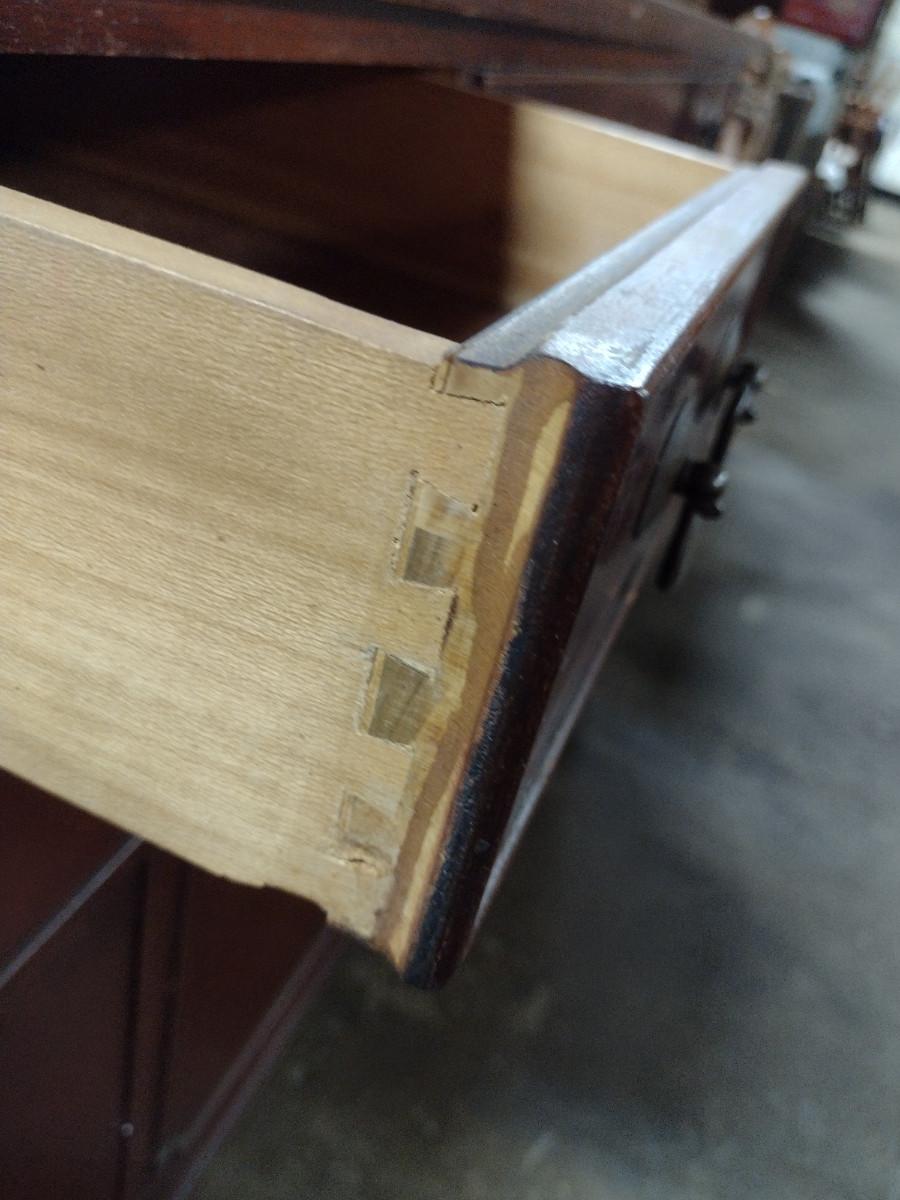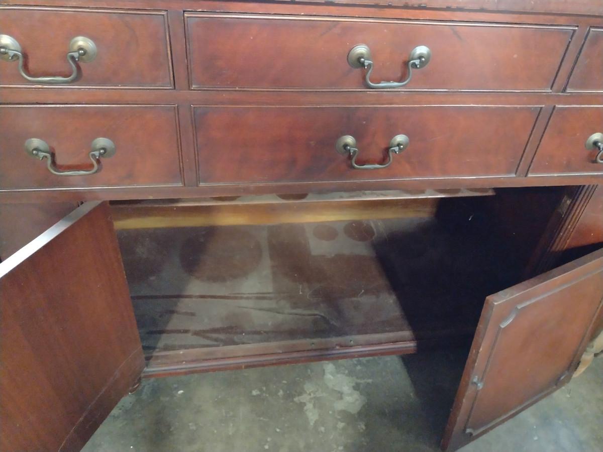Vintage Solid Wood 4 Drawer Credenza. One of bottom doors needs to be re-attached. Approx 52" long, 21" deep, 35 1/2" tall.