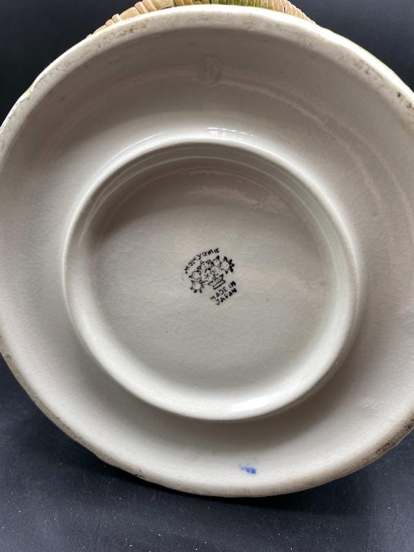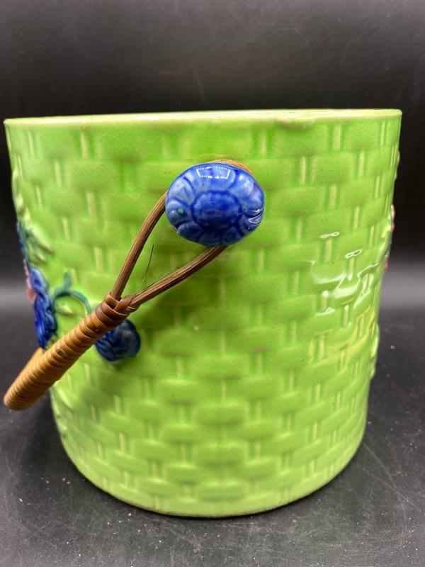 Vintage Moriyama Ceramic Green Basket Cookie Jar with Wood Handle YD#016-1120-00045