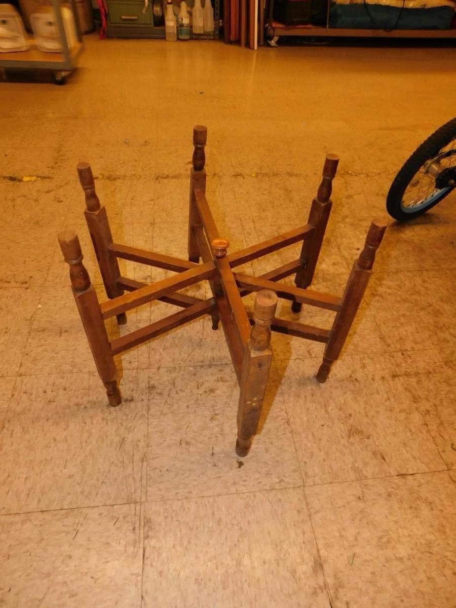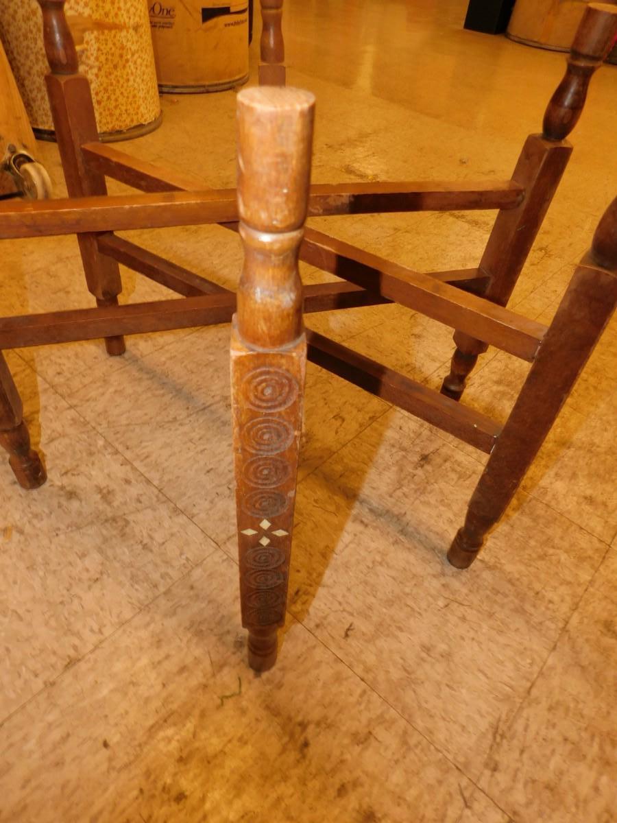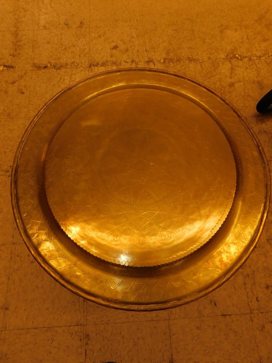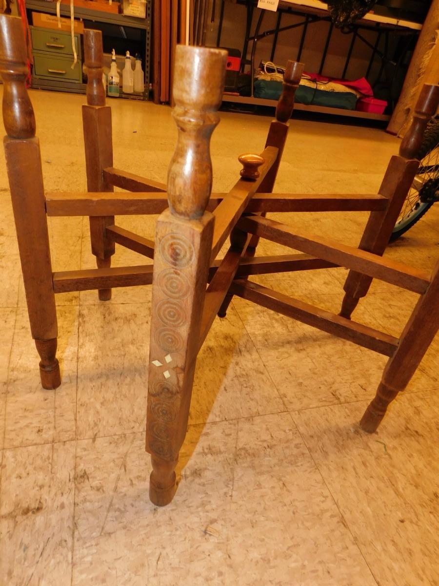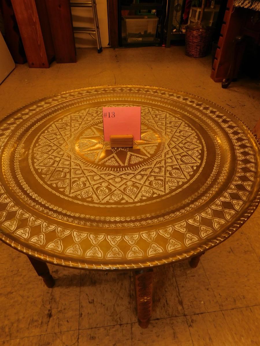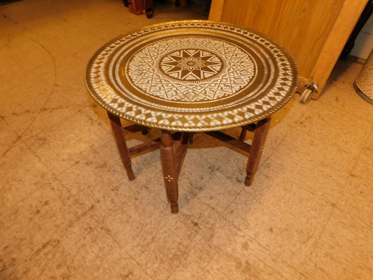 Vintage Moroccan Brass Tray Table w/ Inlayed Wood Stand