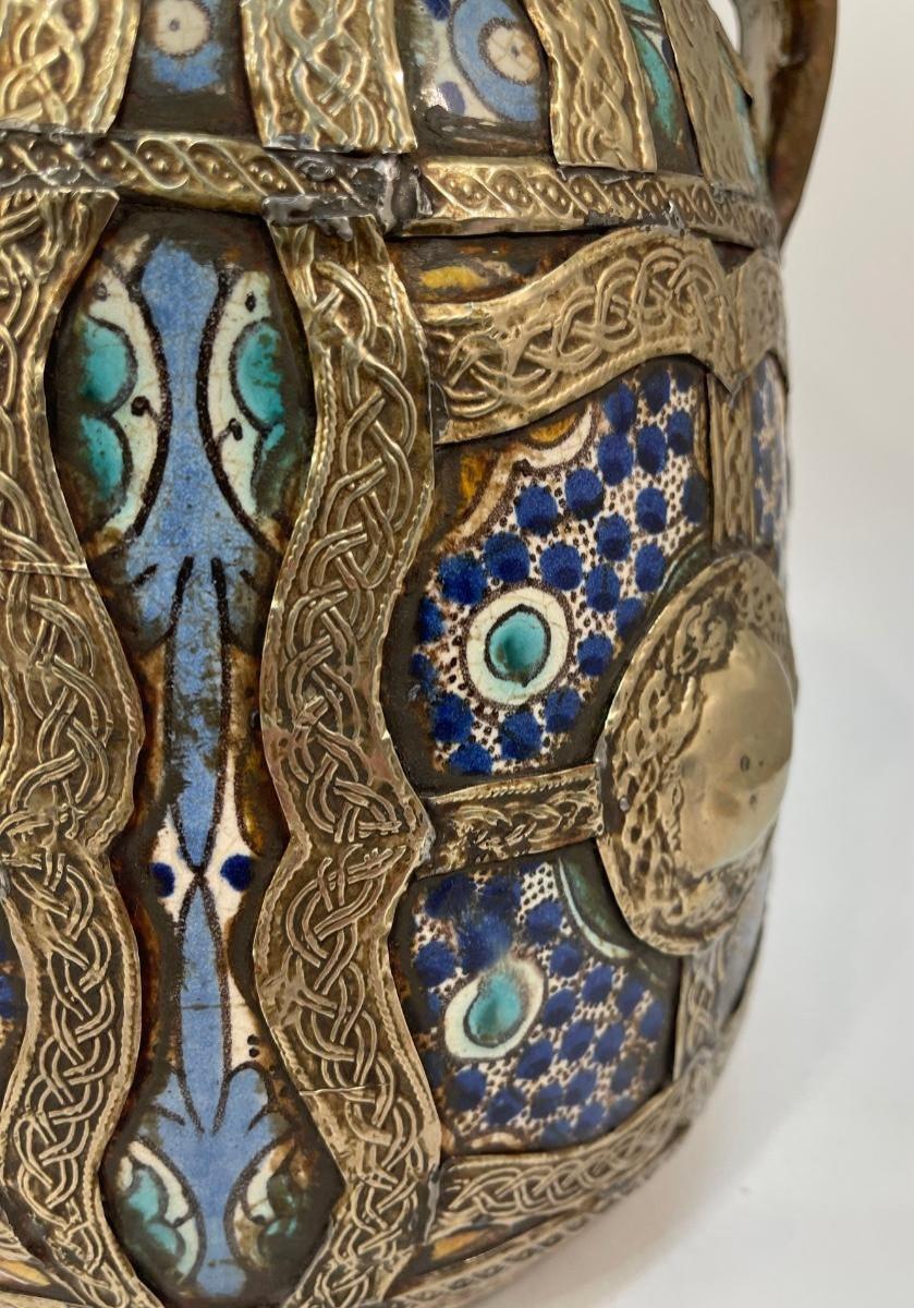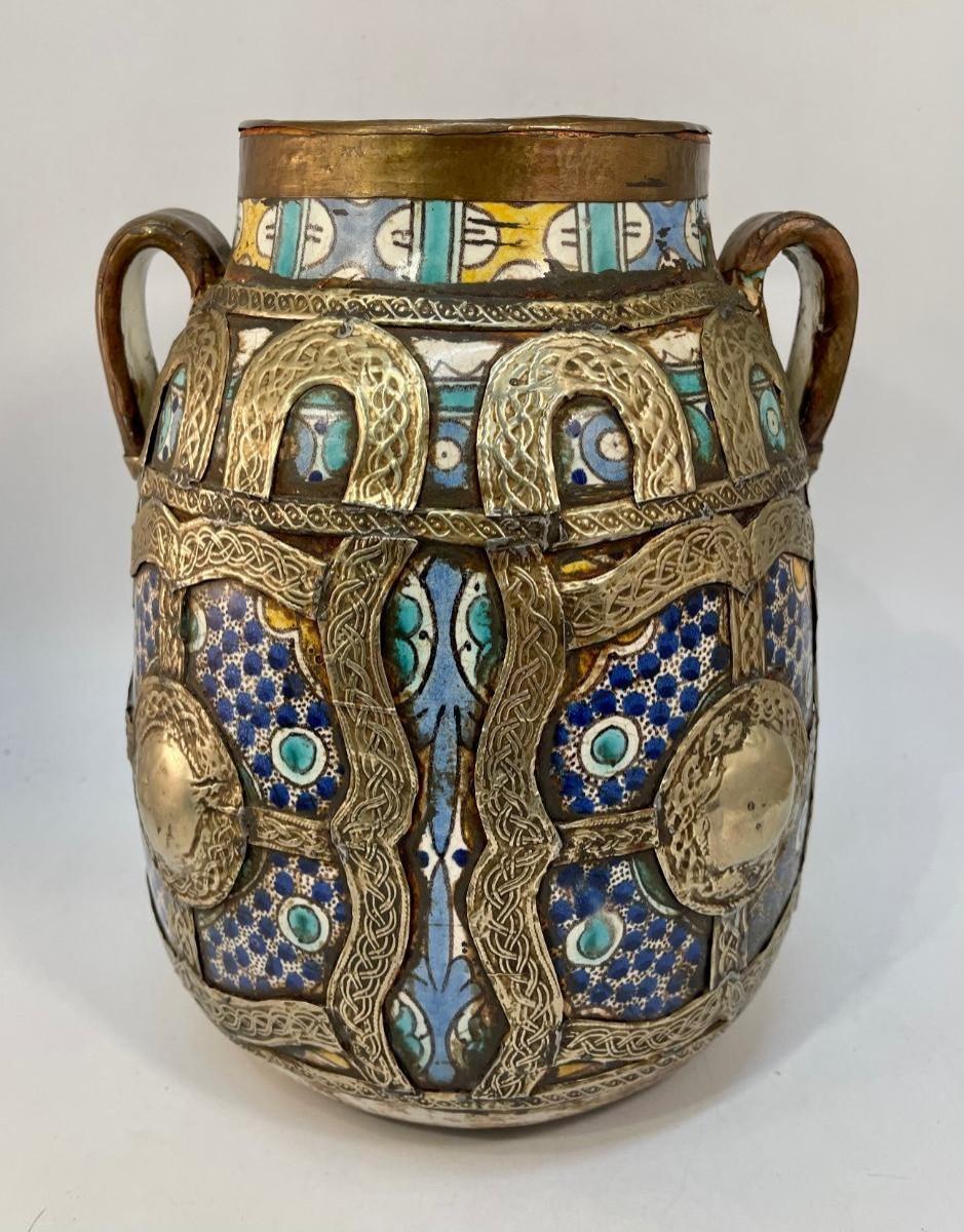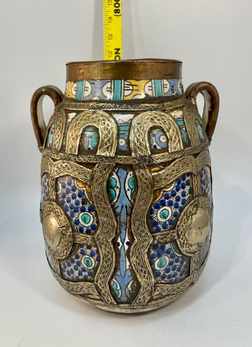 Vintage Moroccan Vase Handcrafted Ceramic with Paint & Silver Strips