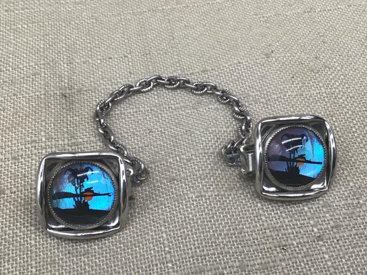 Vintage Morpho Butterfly Wing Tropical Sunset Sweater Guard Clip