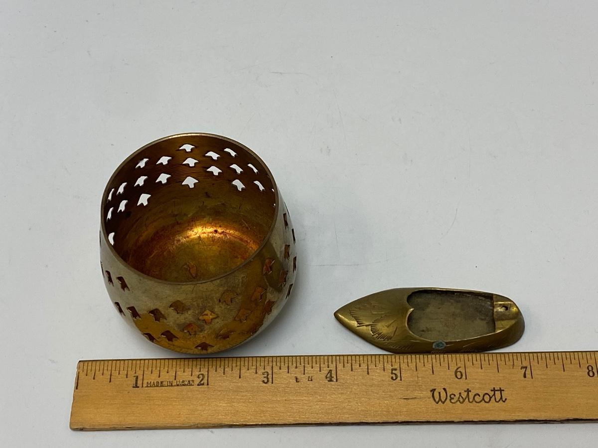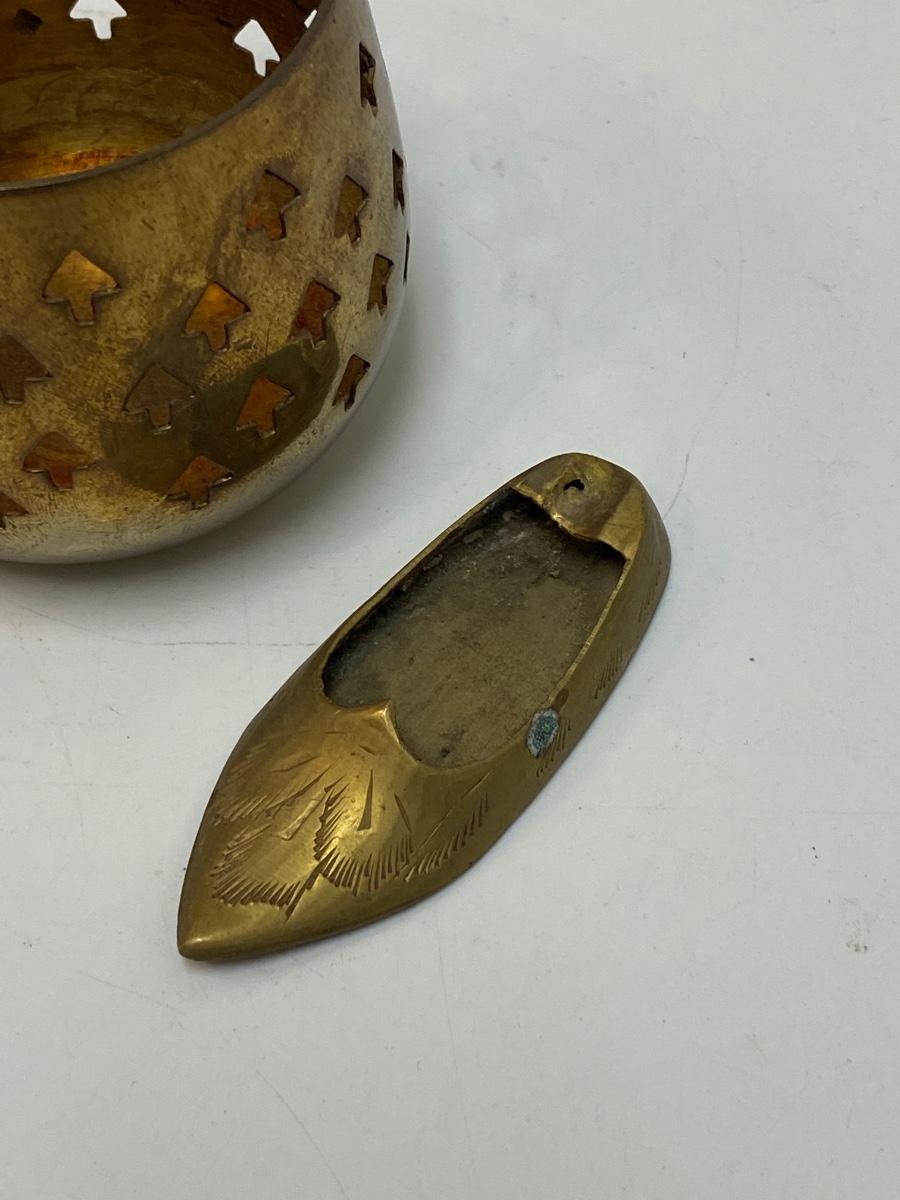Vintage Morrocan Indian Styled Brass Tealight Holder & Trinket Shoe Charm