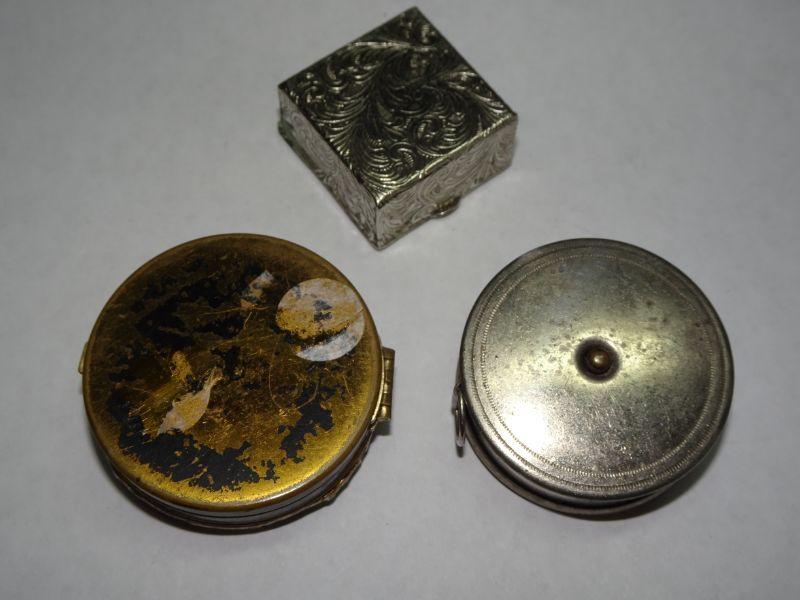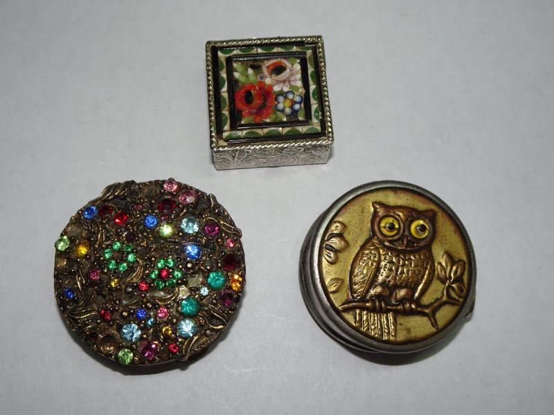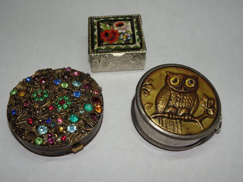 Vintage Mosaic & Rhinestone Pill Boxes & Tape Measure