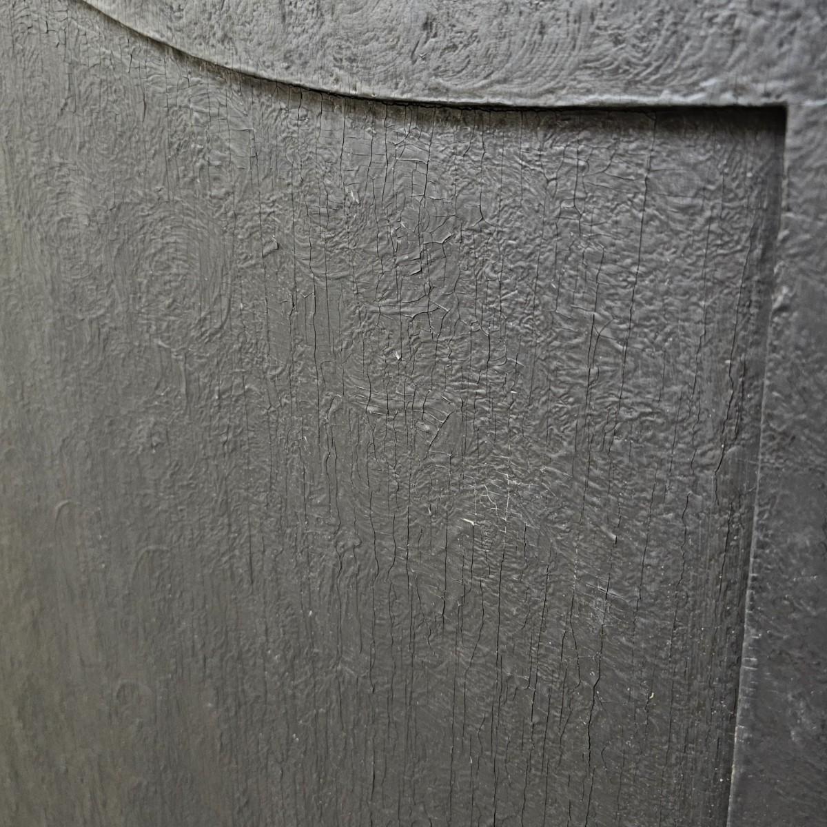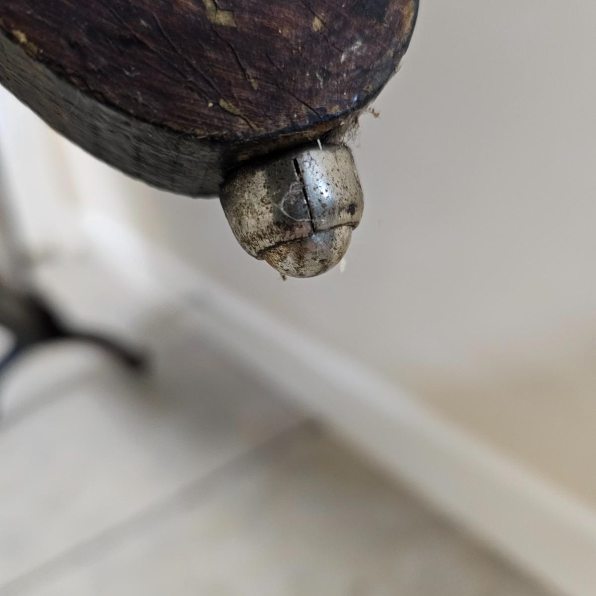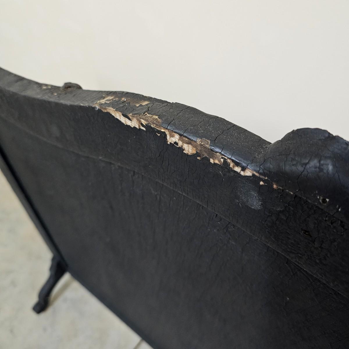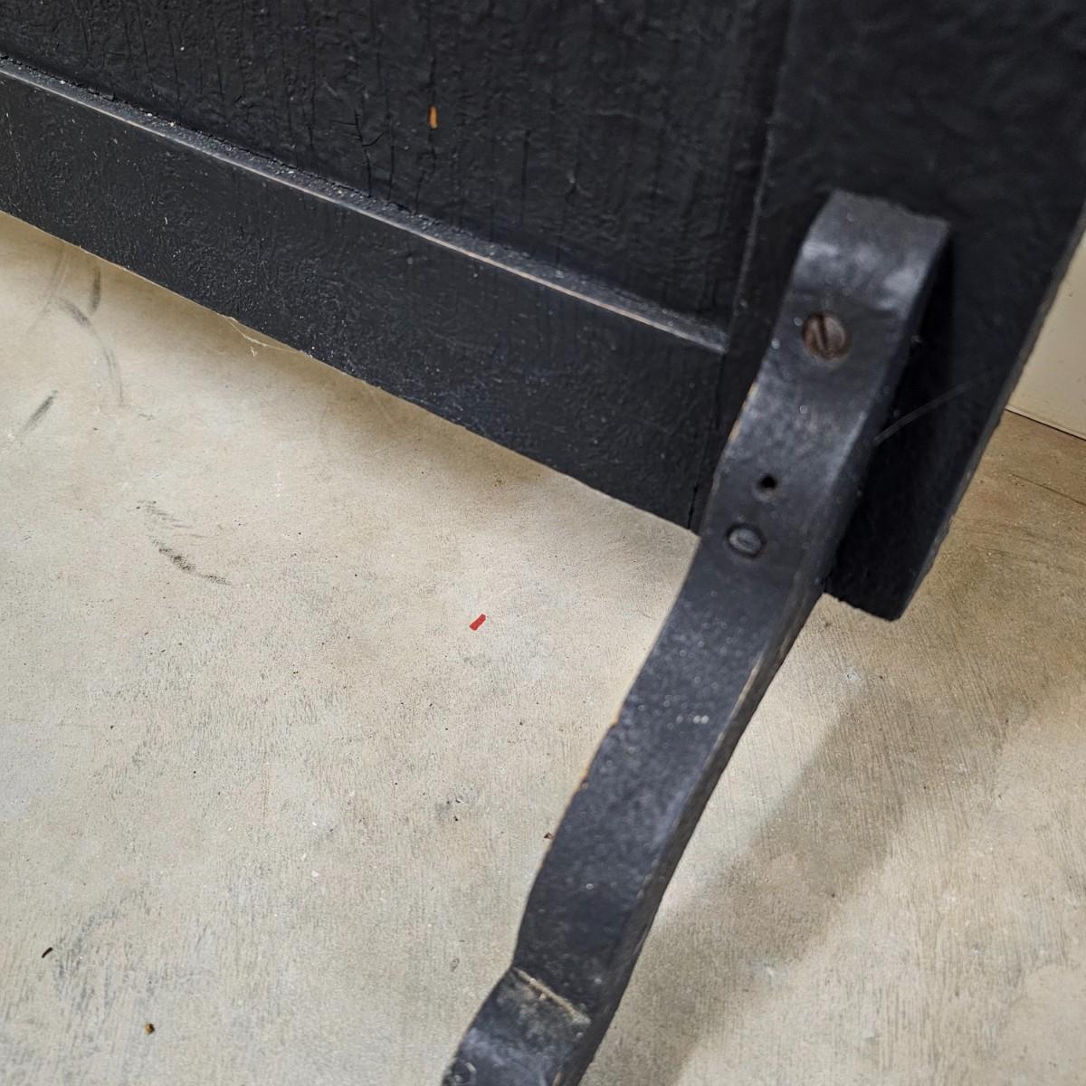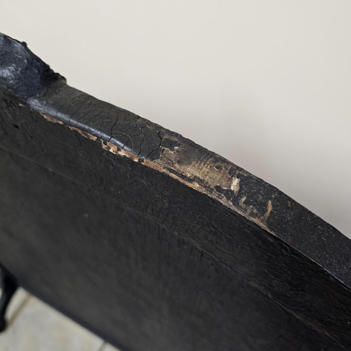 Decorated wood frame and legs with a 1/2" mosaic tile front, depicting flowers in a vase. Lovely patina on tiles from use. Wood frame has scrollwork at tops and beading down sides and across bottom. Back is solid piece of wood. Decor and beading have some missing pieces. Metal roller casters on bottom of legs. See photos for details. Local pickup only.