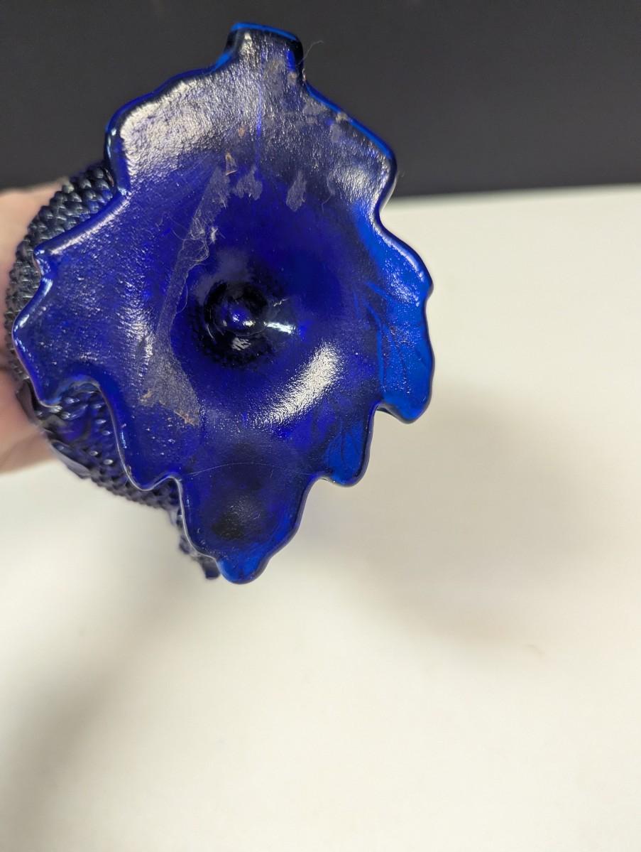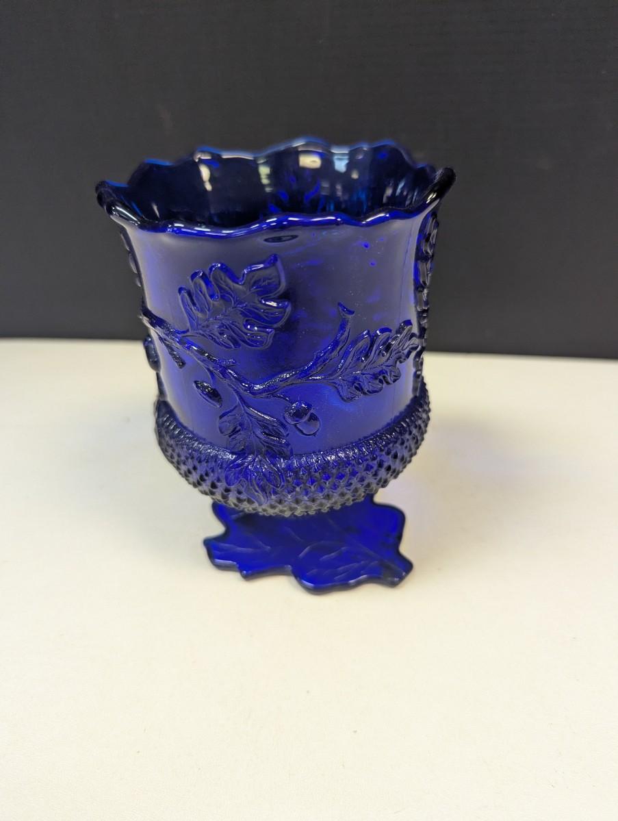 Vintage Mosser Cobalt Blue Pattern Glass Oak Leaf Acorn Spooner