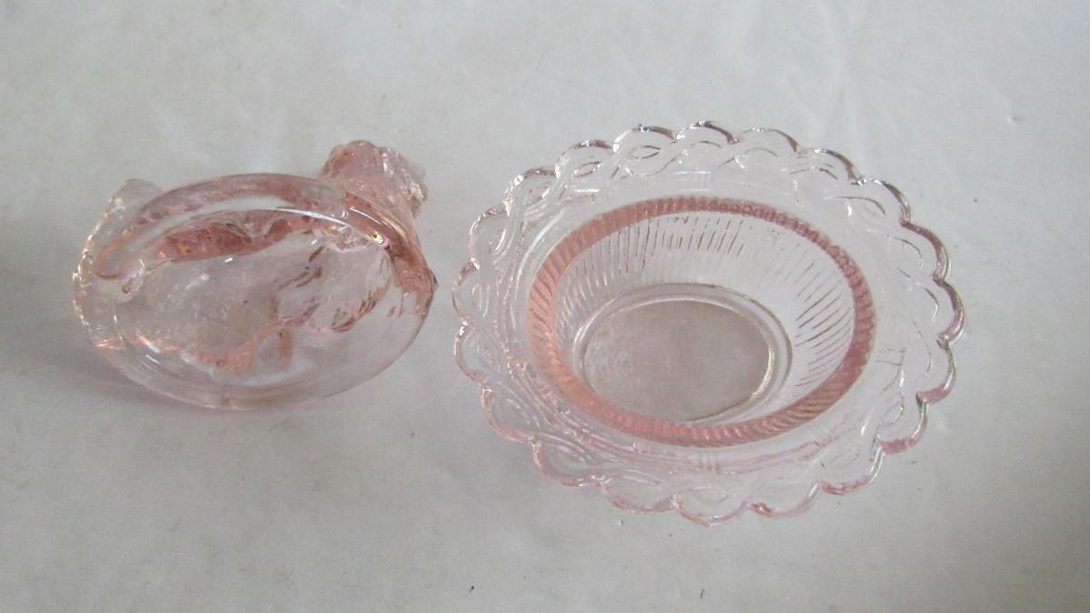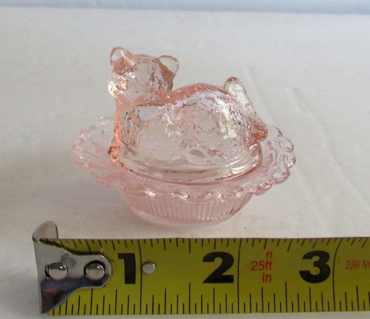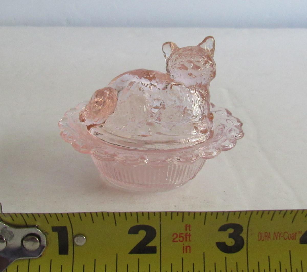 Vintage Mosser Glass Transparent Pink Cat Covered Salt