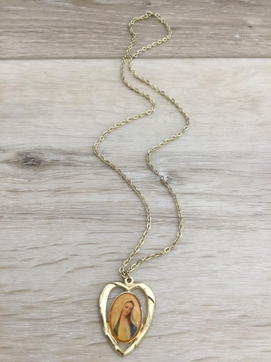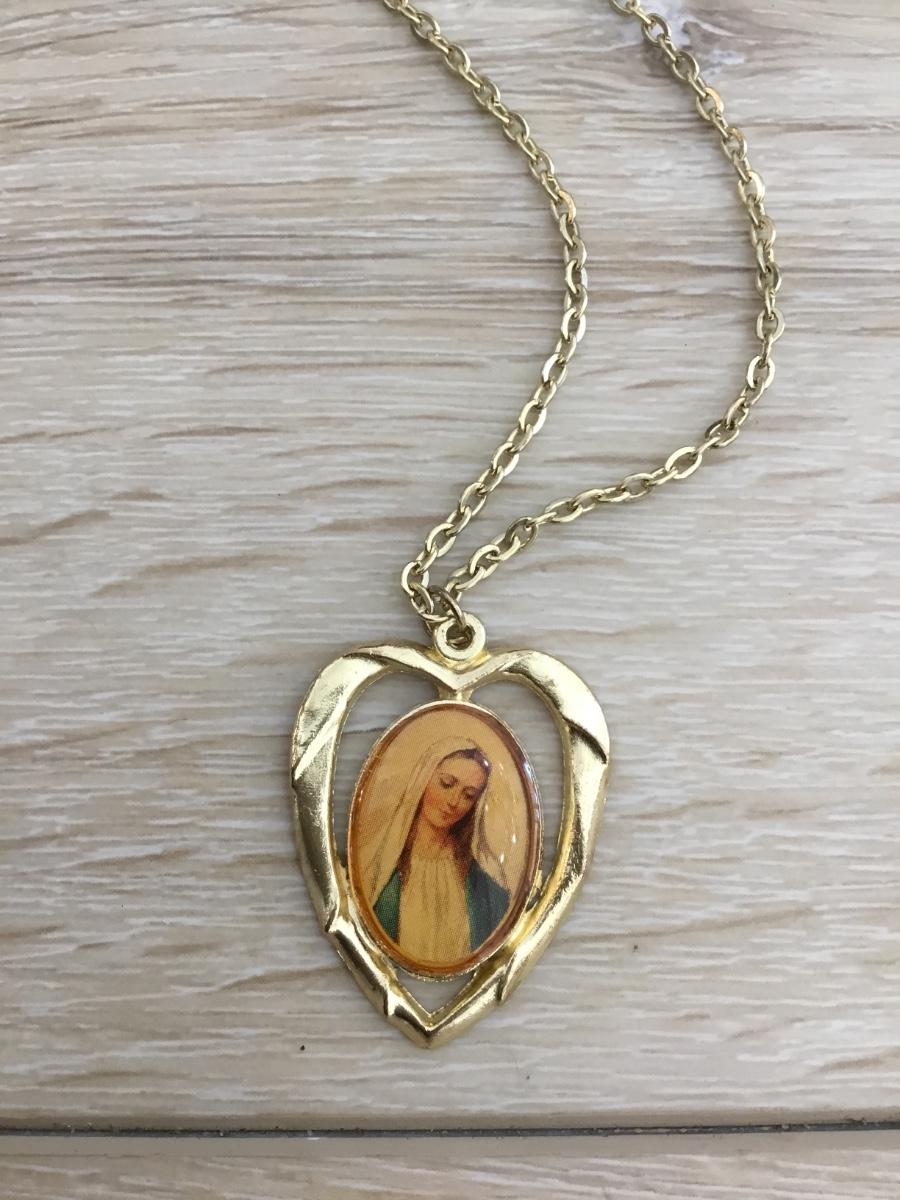 Vintage mother, Mary , gold tone heart pendant, necklace