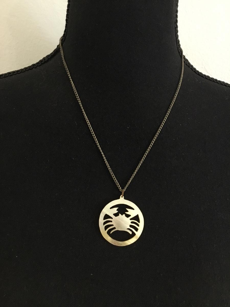 Vintage mother of pearl crab carved shell pendant and Silver toned chain necklace