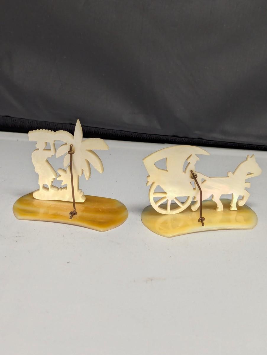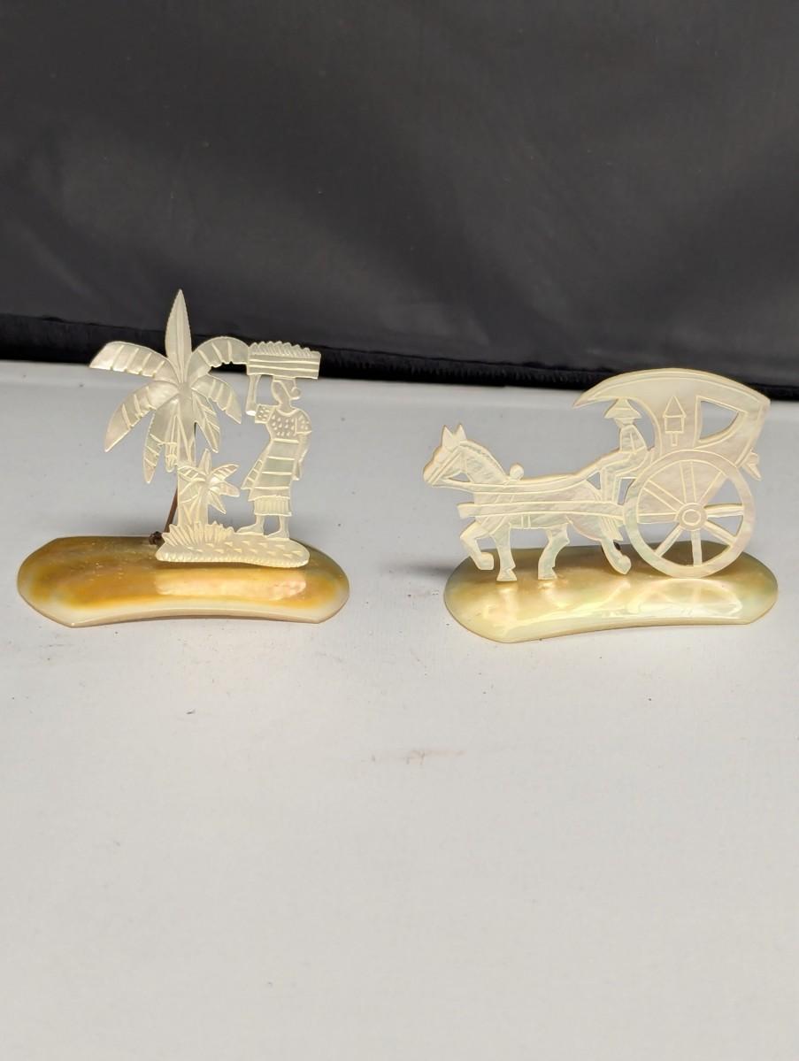 Vintage Mother Of Pearl Figures Attached To Mother Of Pearl Base