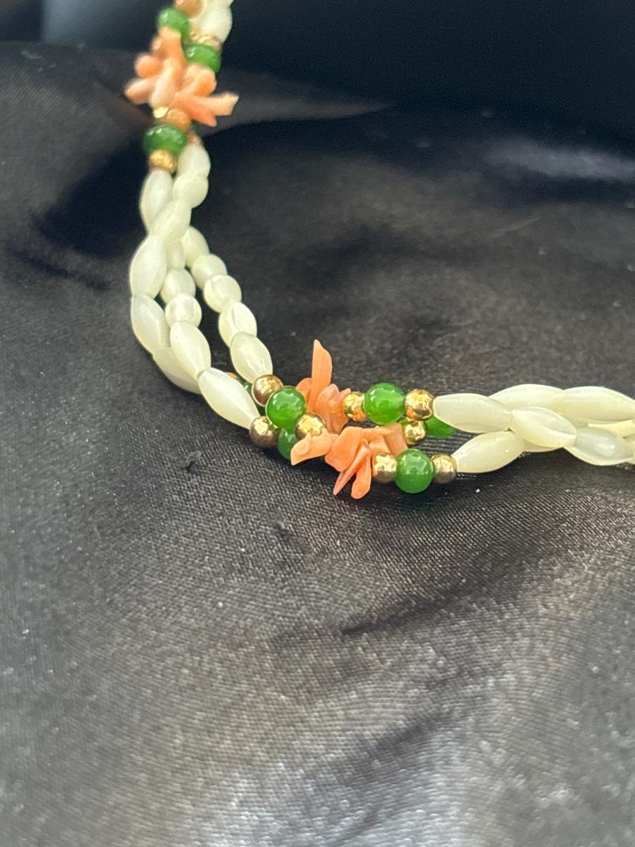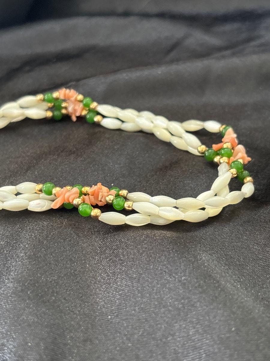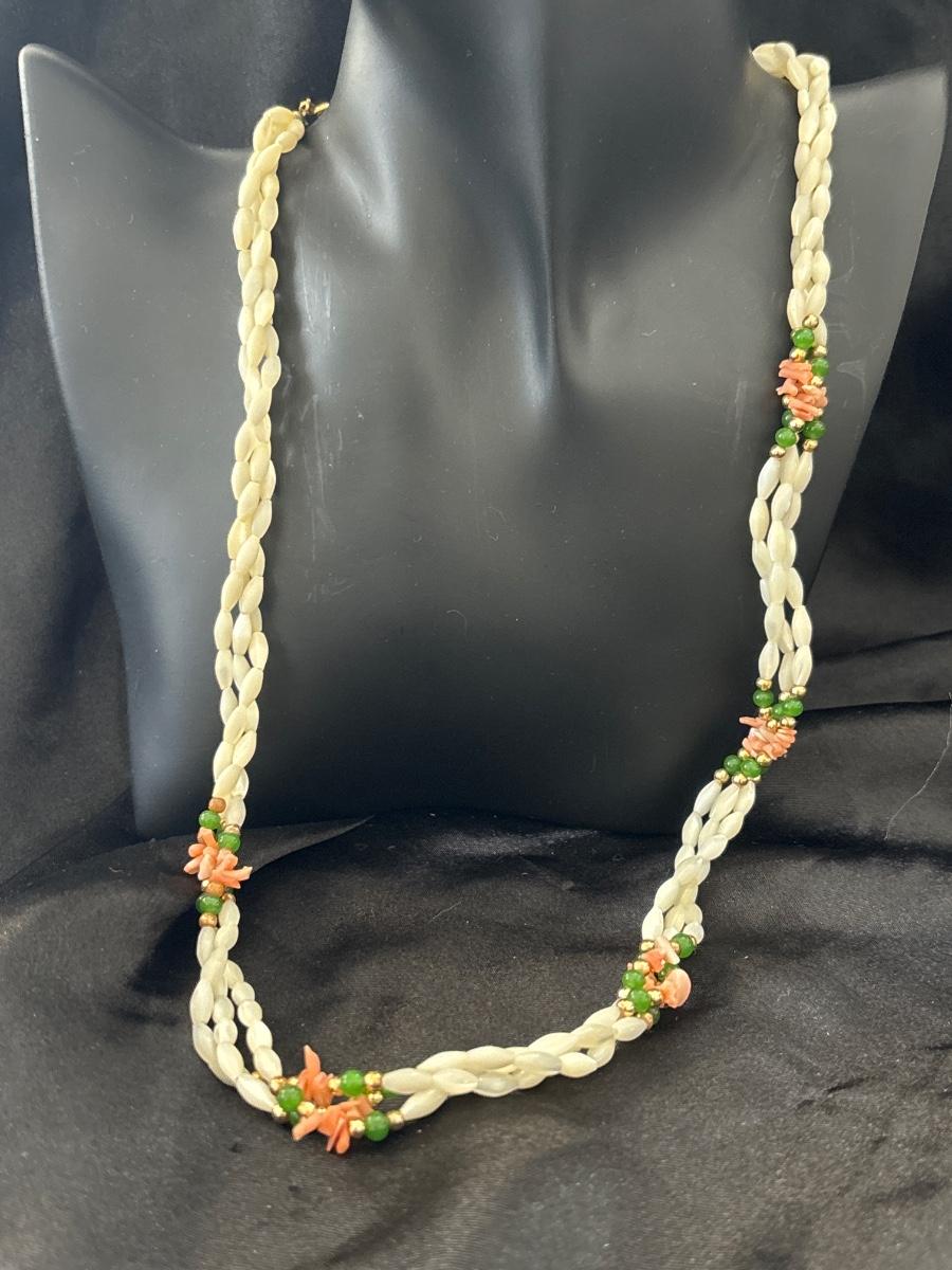 Vintage Mother of Pearl Jade Peach Sea Coral Twist Necklace 18”