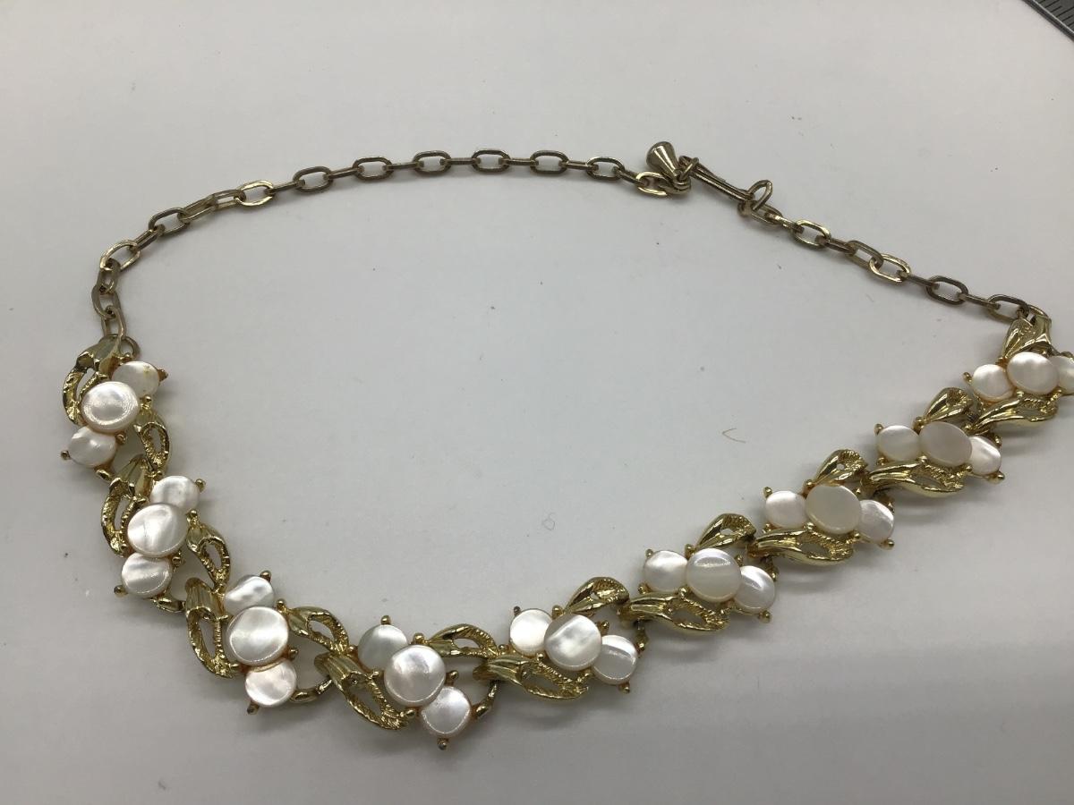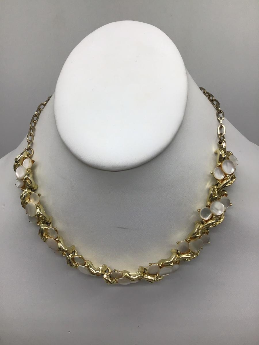 Vintage Mother Of Pearl Swirl Round Gold tone Necklace