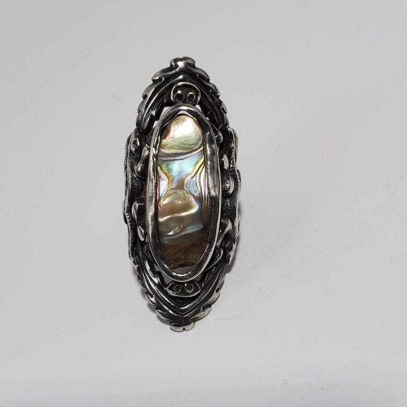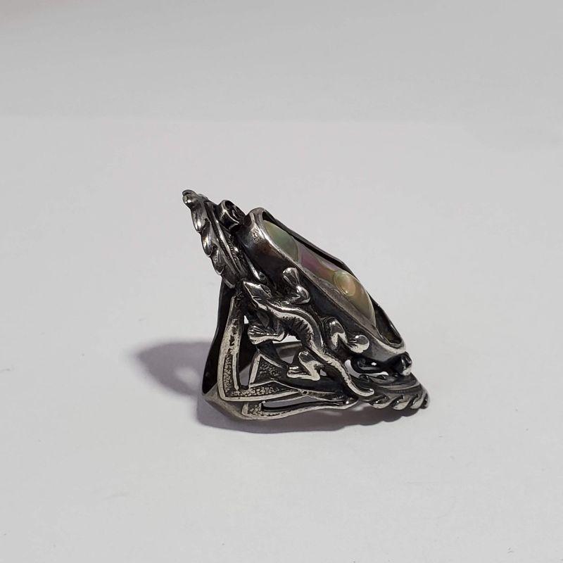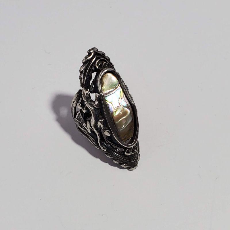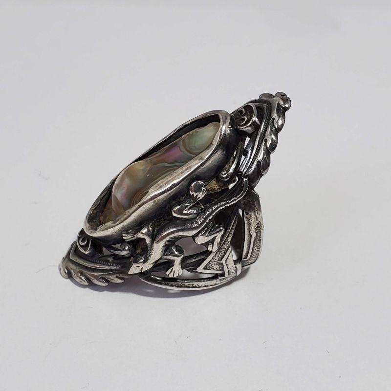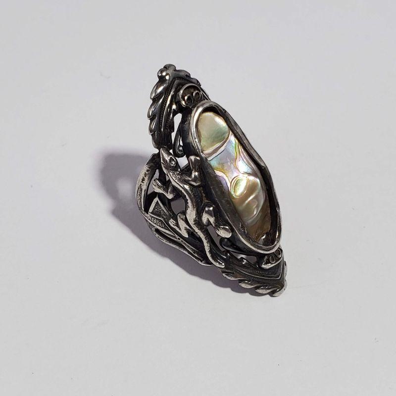Vintage Mother of Pearl/Abalone Gecko Silver Ring