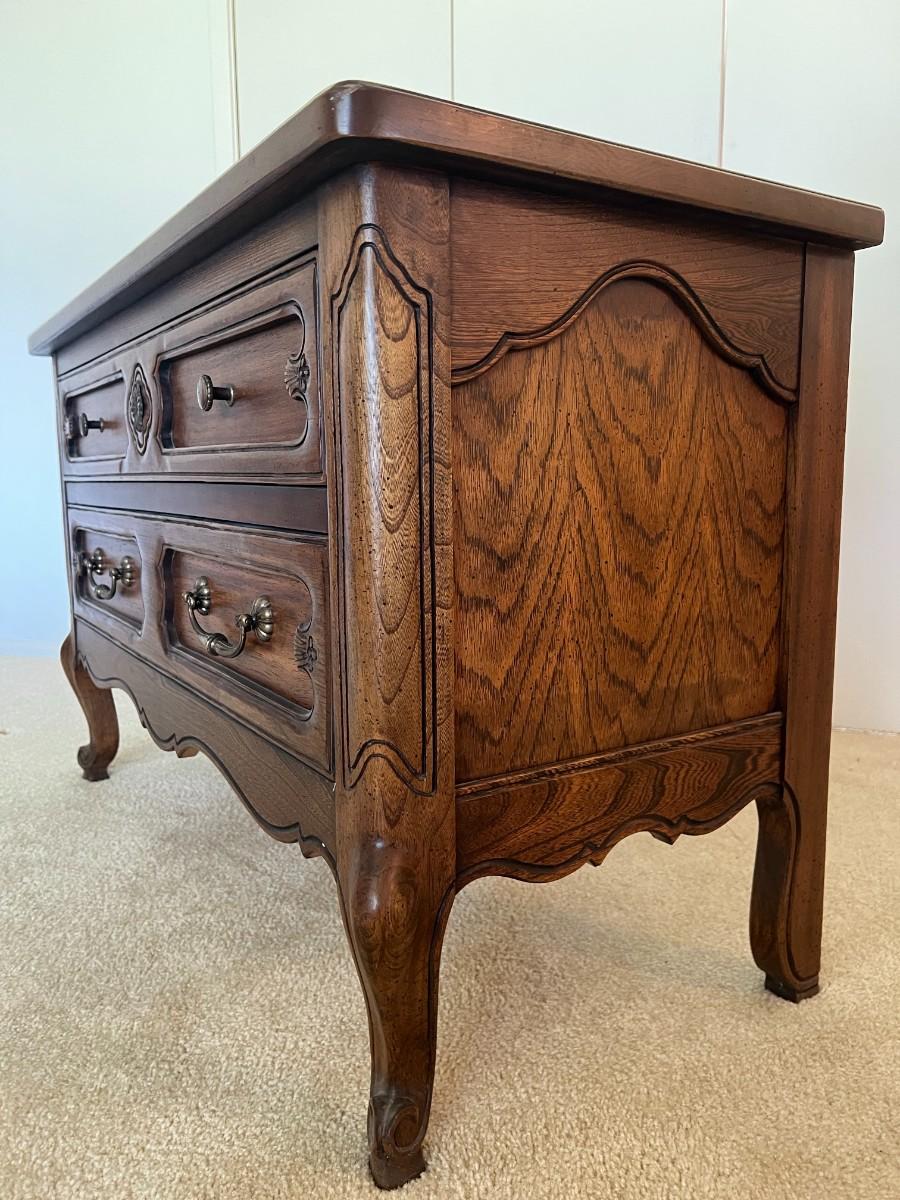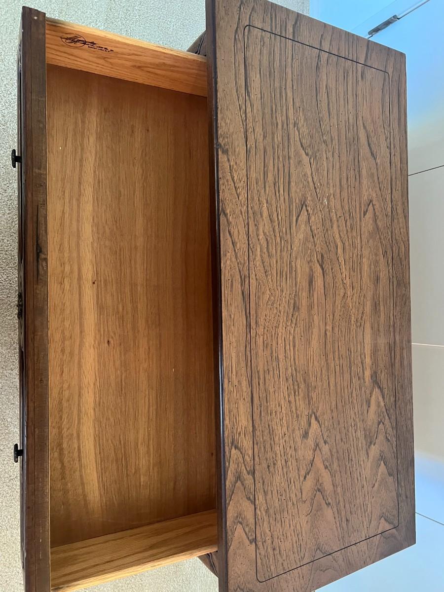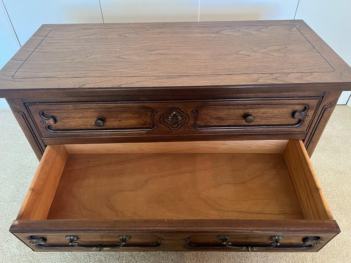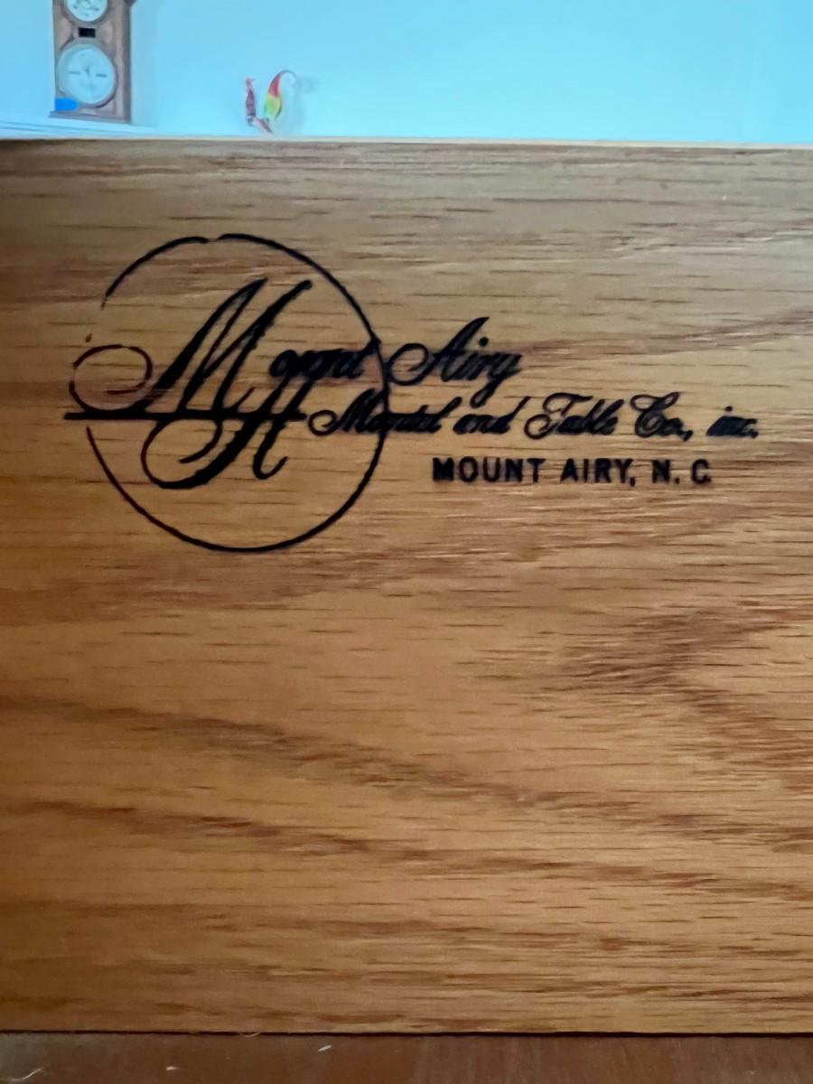 Vintage Mount Airy Mantle and Table Co. Oak Wood Two Drawer Small Dresser Buffet Sideboard Cabinet