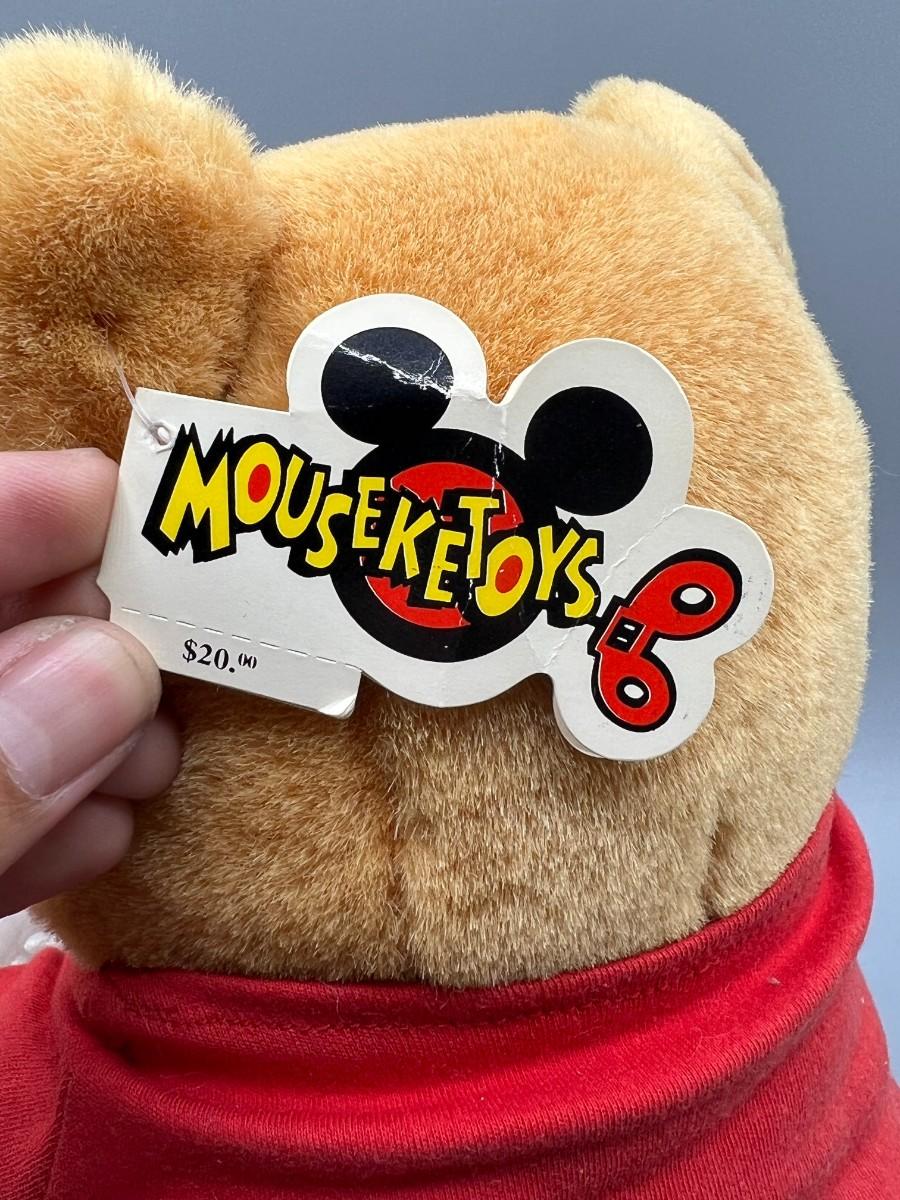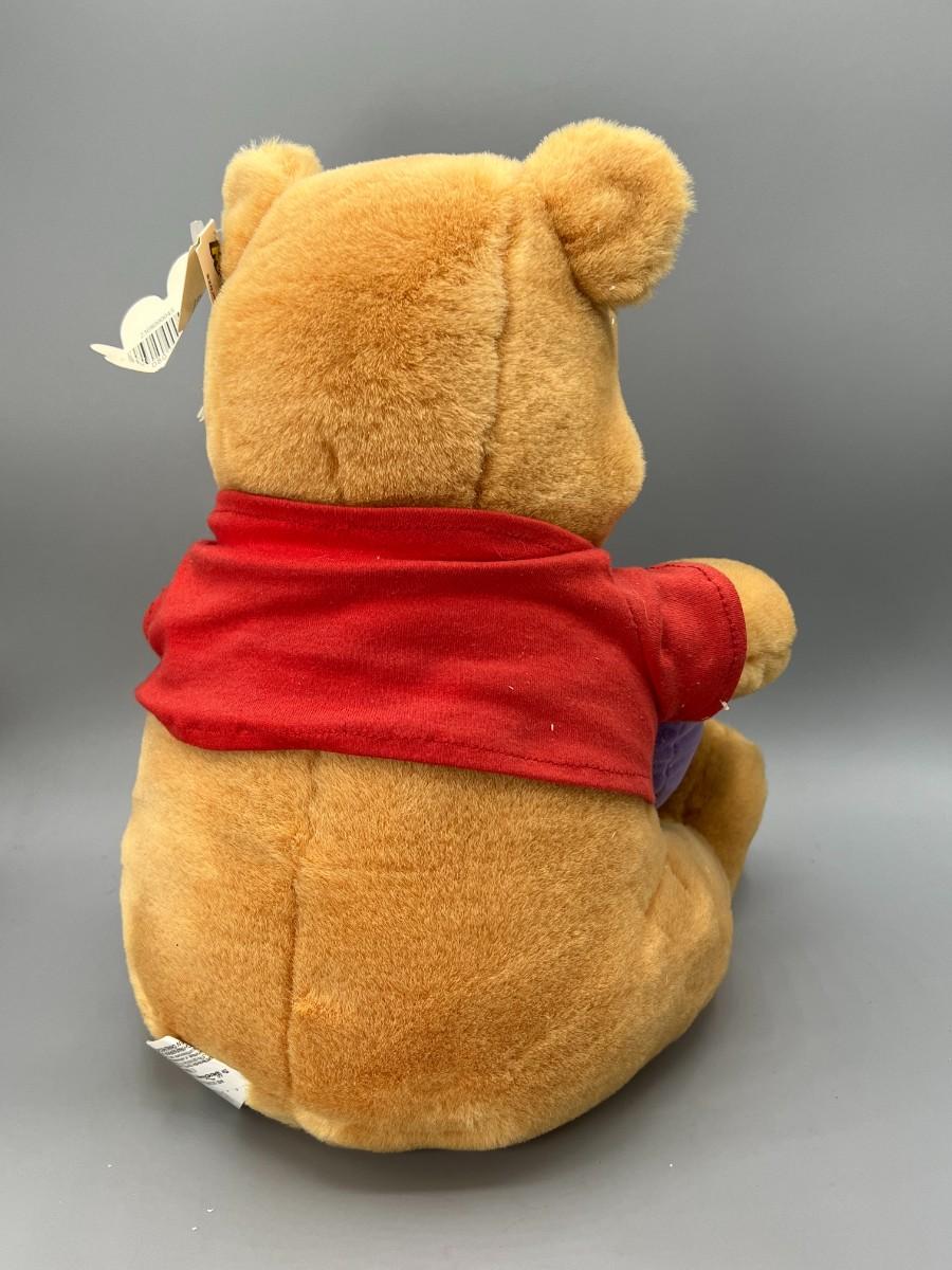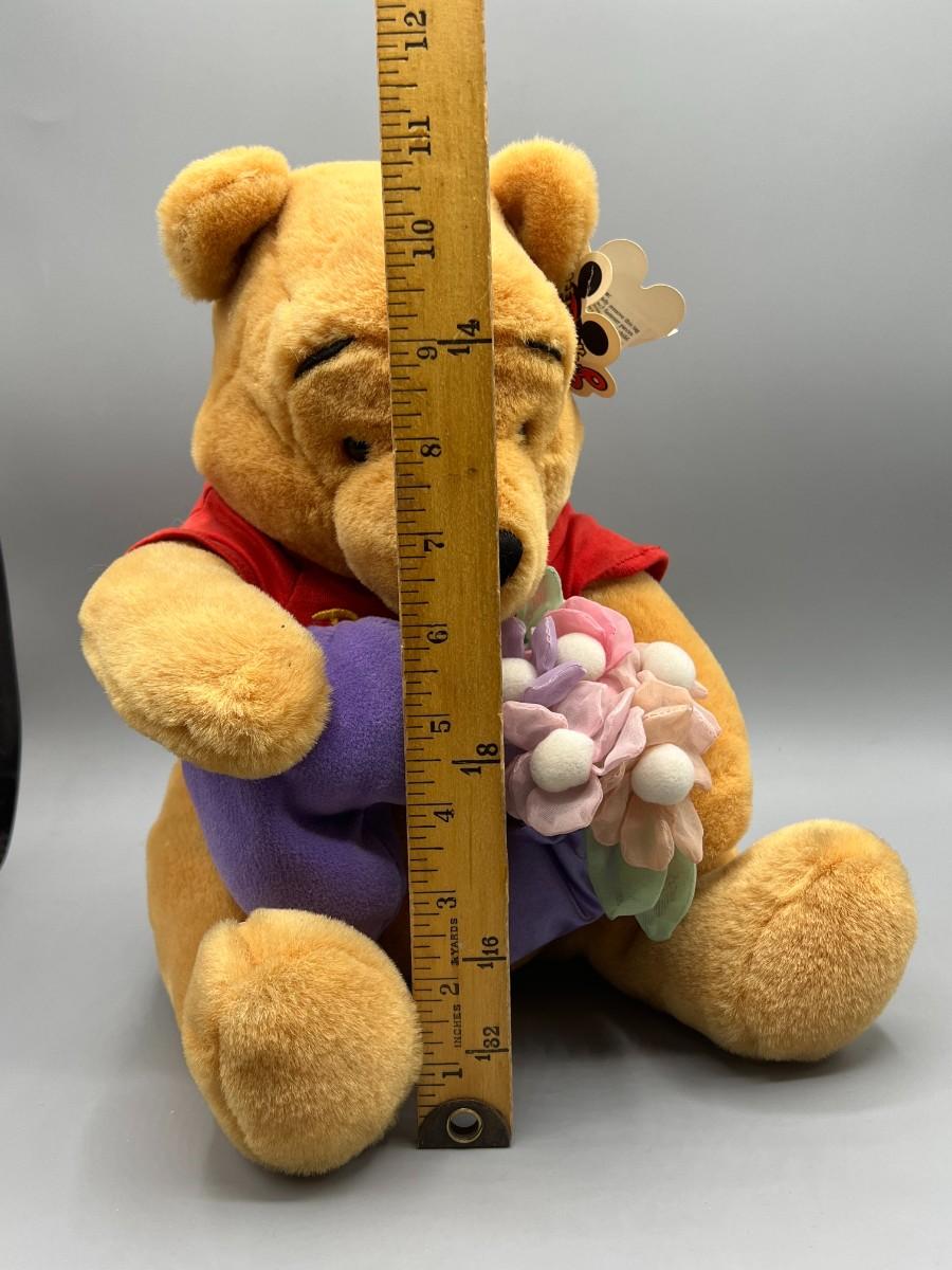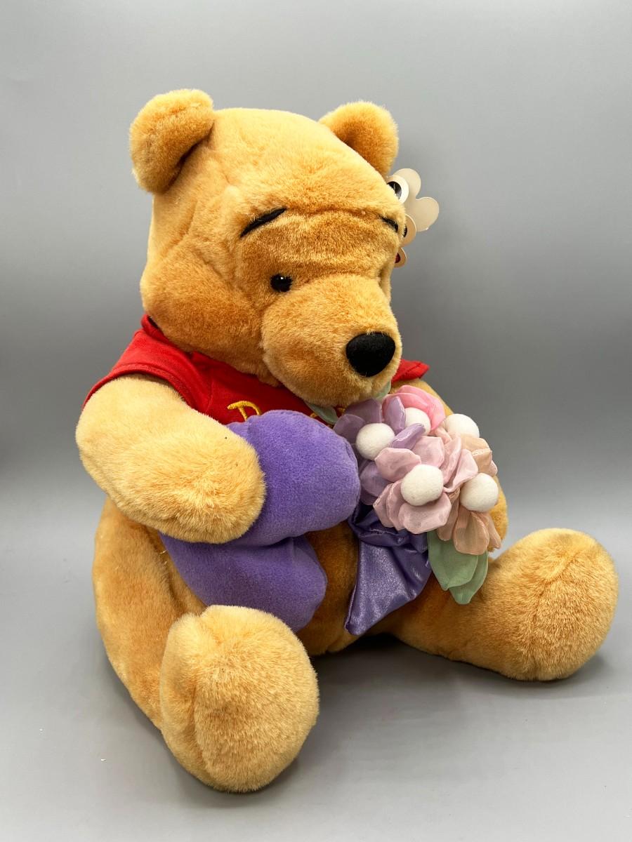 Vintage Mouseketoys Winnie The Pooh Plush Stuffed Animal. Winnie the pooh is holding heart and flowers. Original tags attached. May be dusty from age, display, and storage.