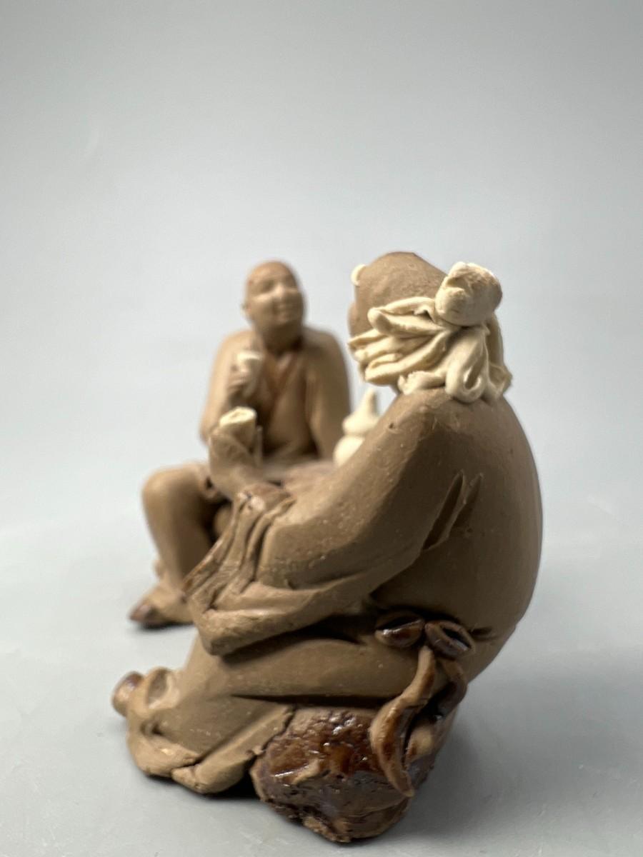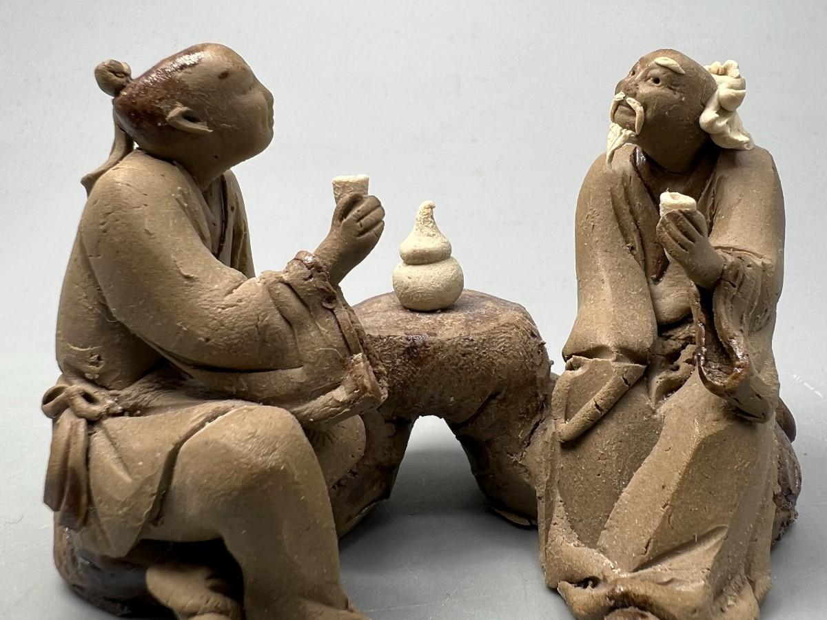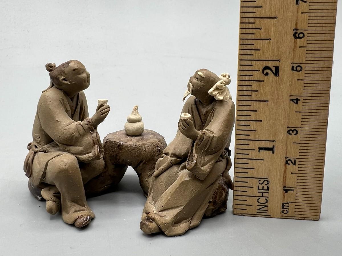 Vintage Mudmen Clay Oriental Drinking Tea Men Miniature Bonsai Figurine