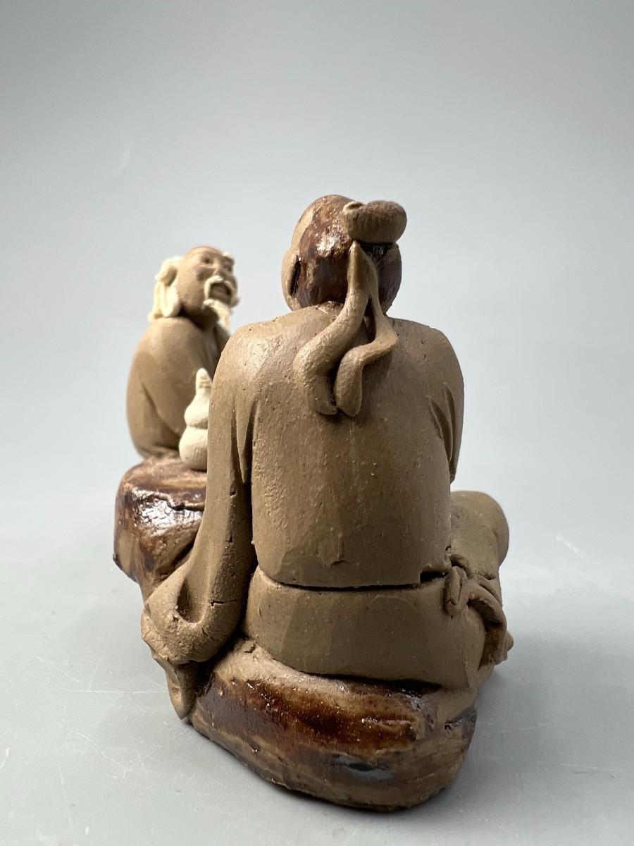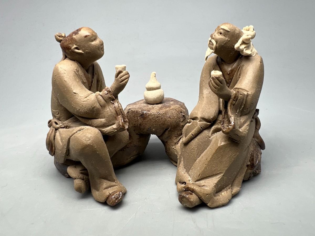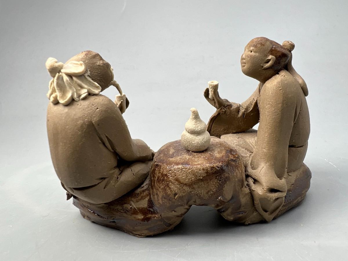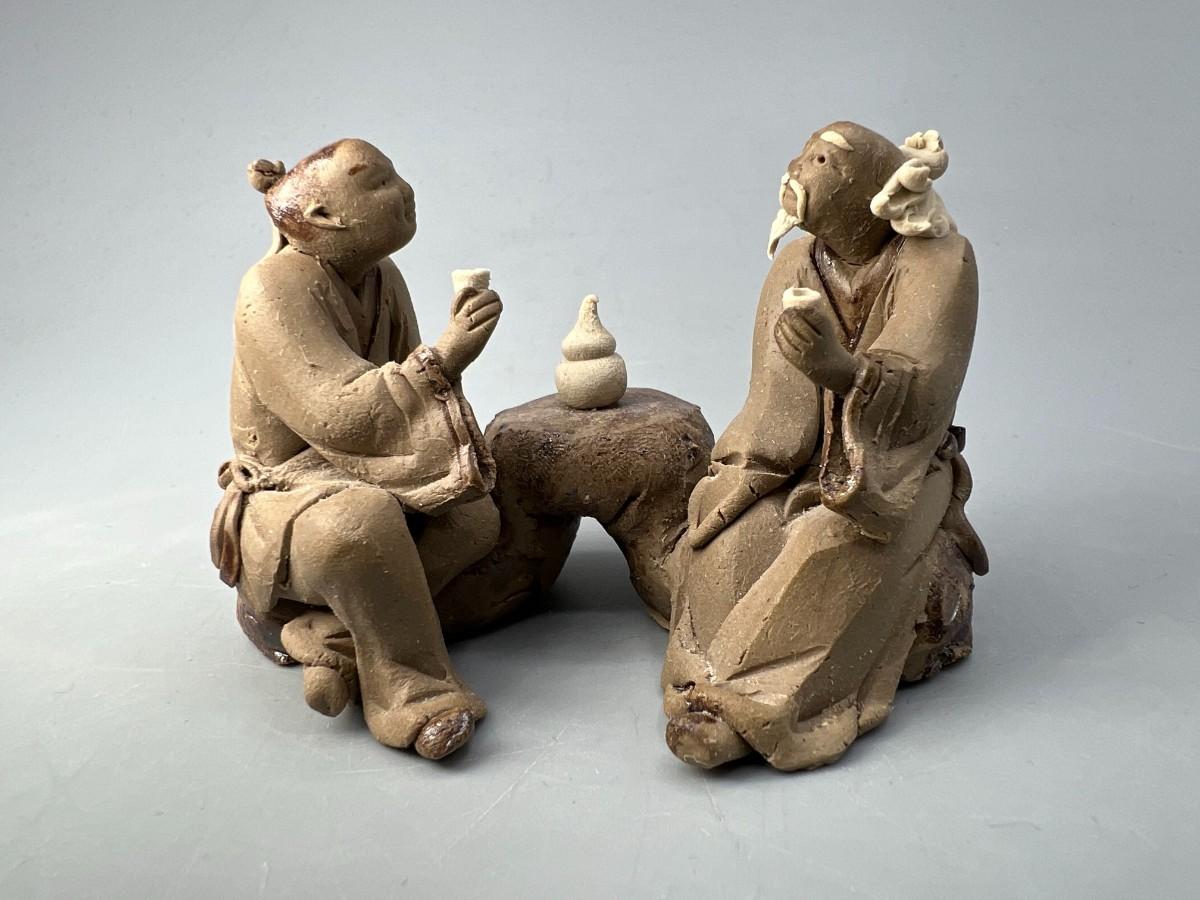 Vintage Mudmen Clay Oriental Drinking Tea Men Miniature Bonsai Figurine
