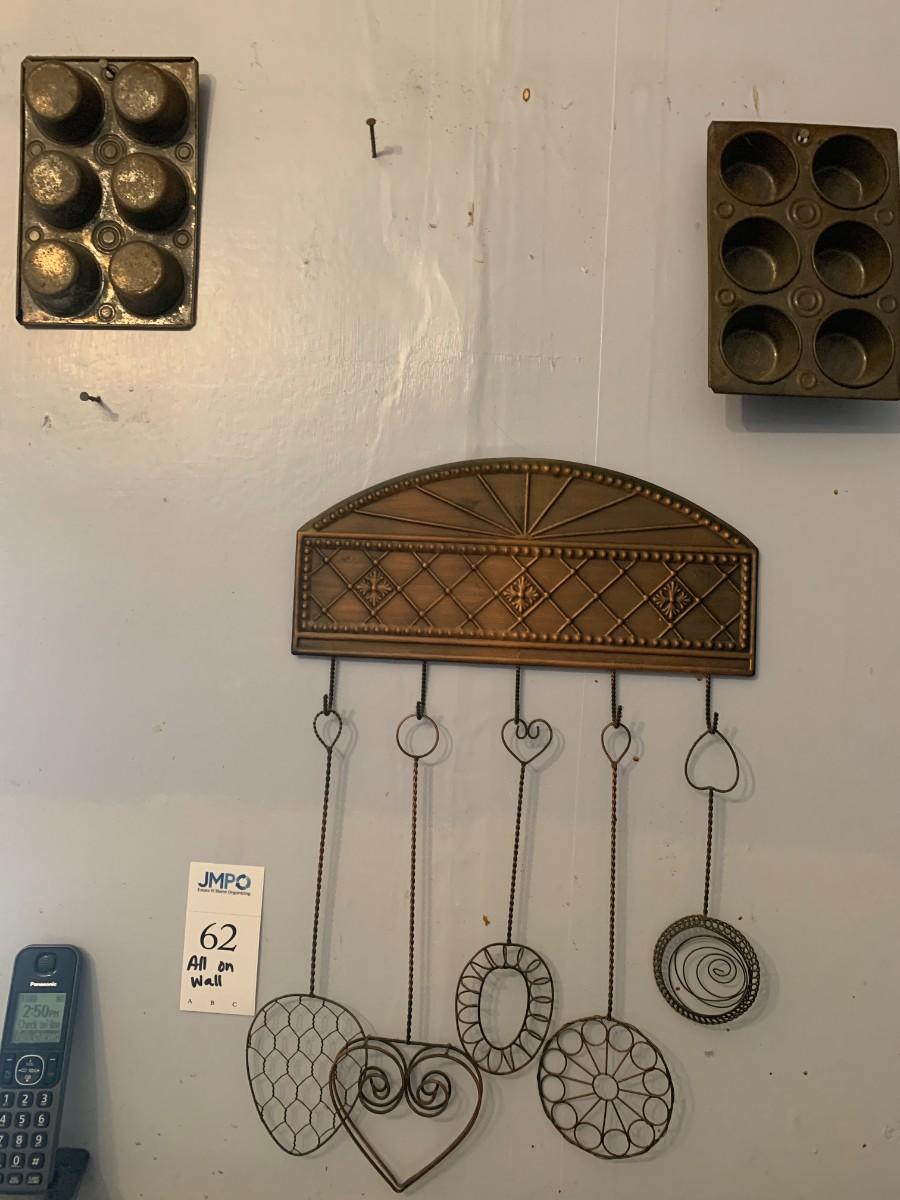 Vintage Muffin Tins, Wall Mounted Hooks with Wired Art