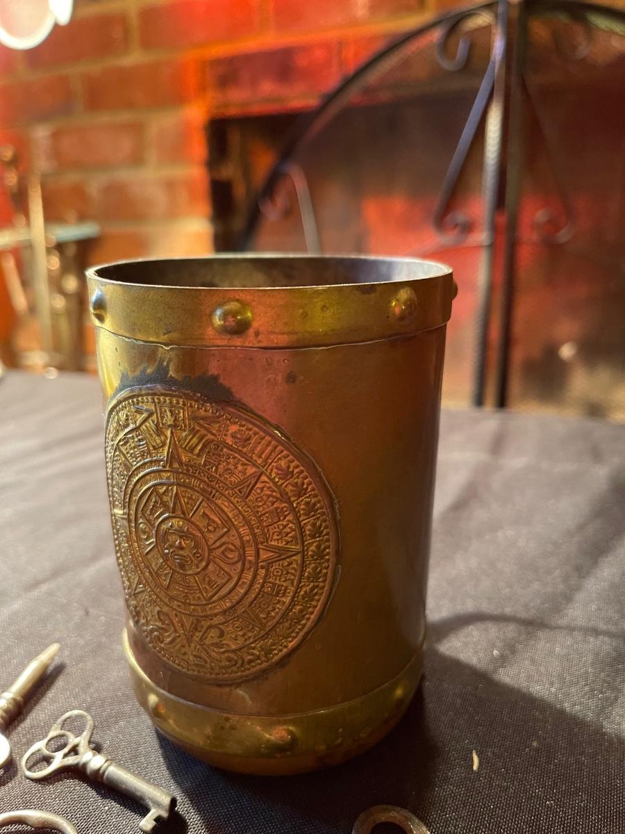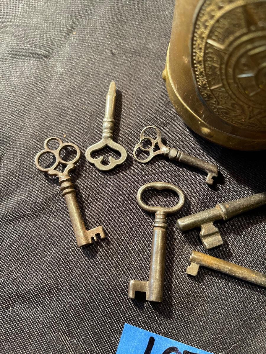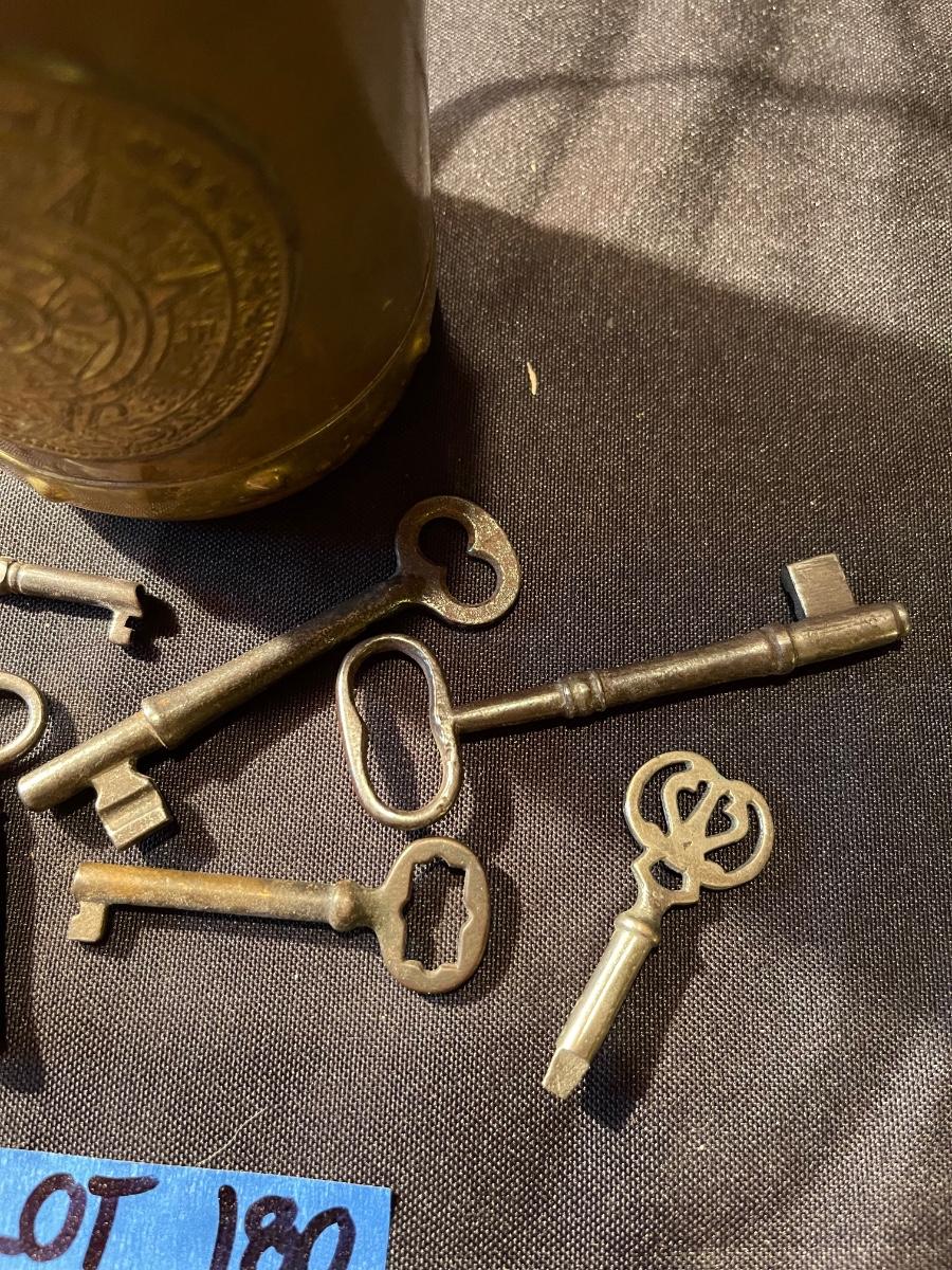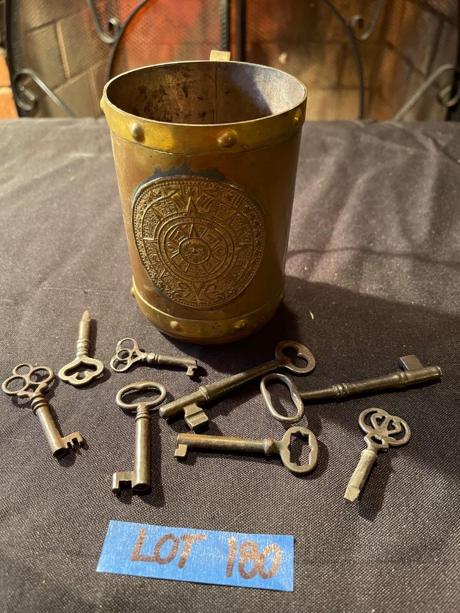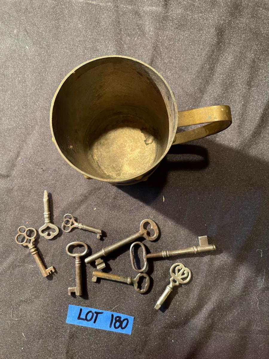 Vintage mug & (8) anitque skeleton keys *