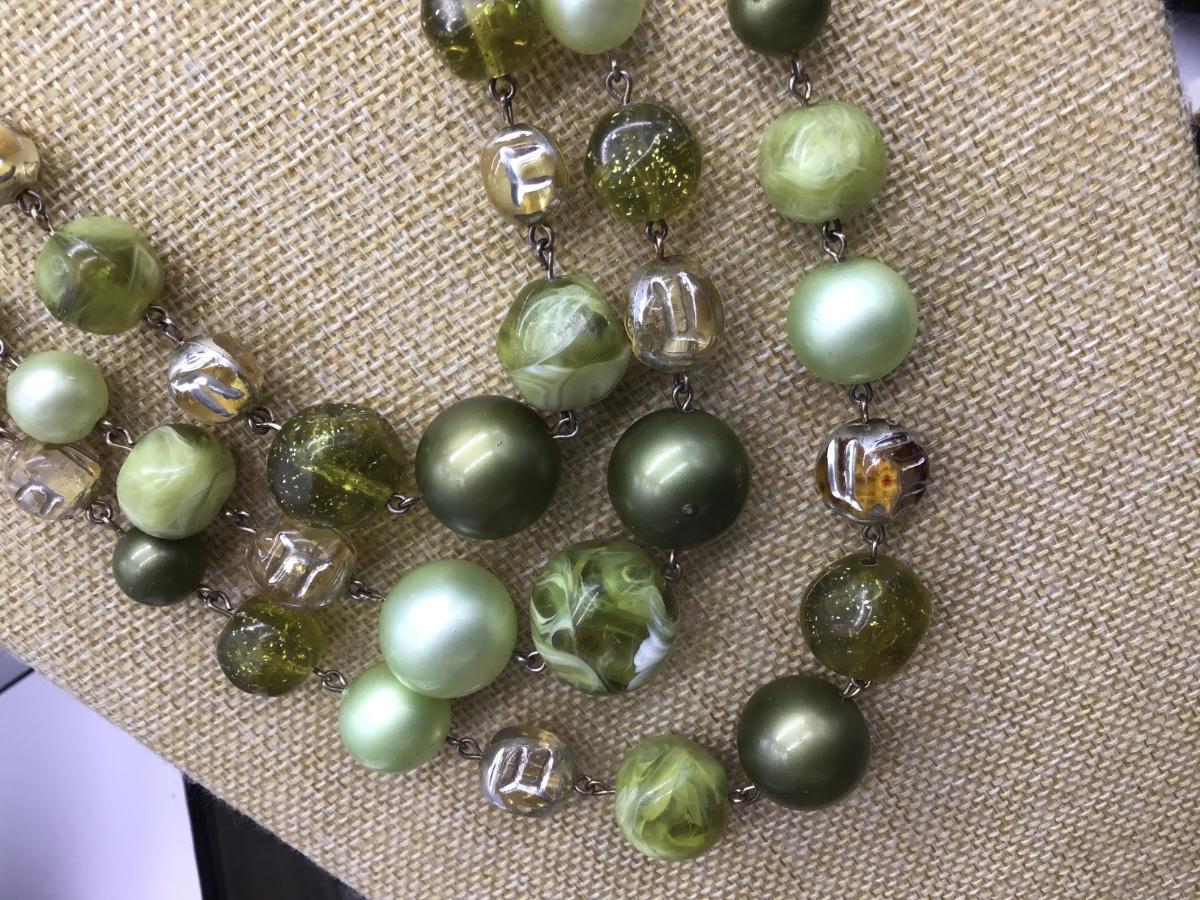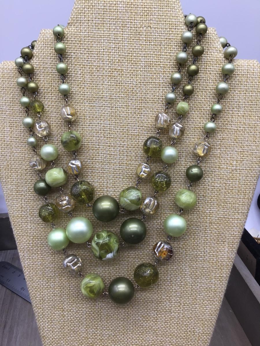 Vintage Multi Color Green 3 Strand Necklace. Pretty 😍