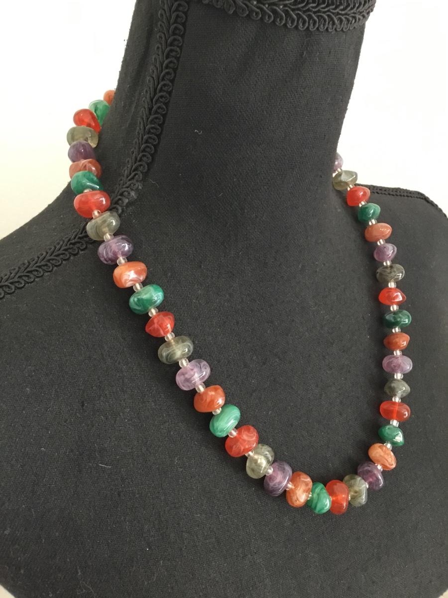 Vintage multi colored faux stone bead necklace