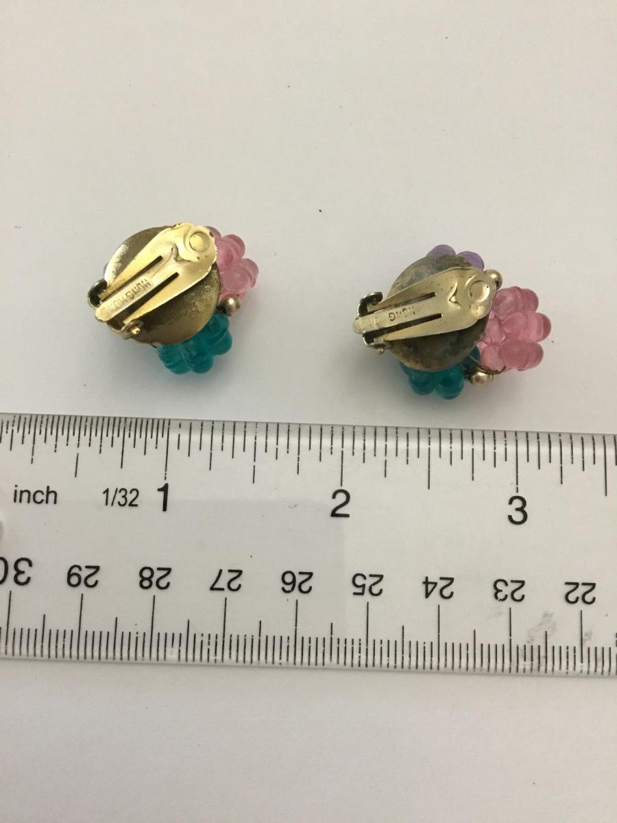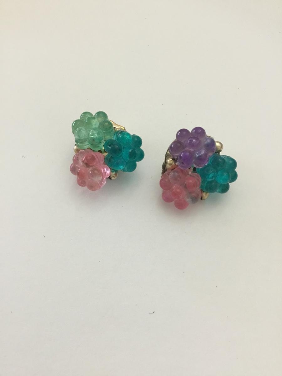 Vintage Multi colored flower clip on earrings
