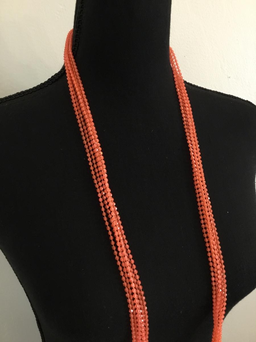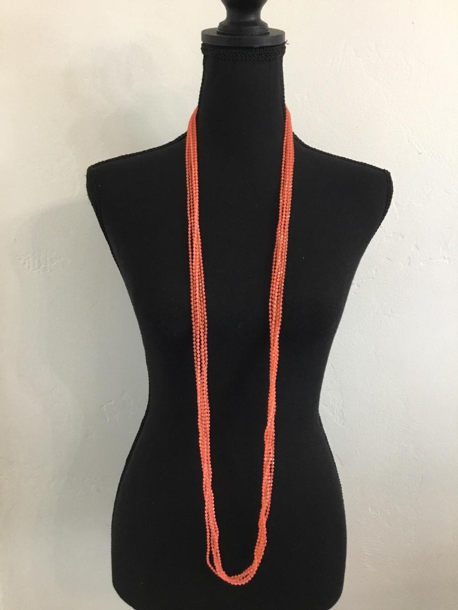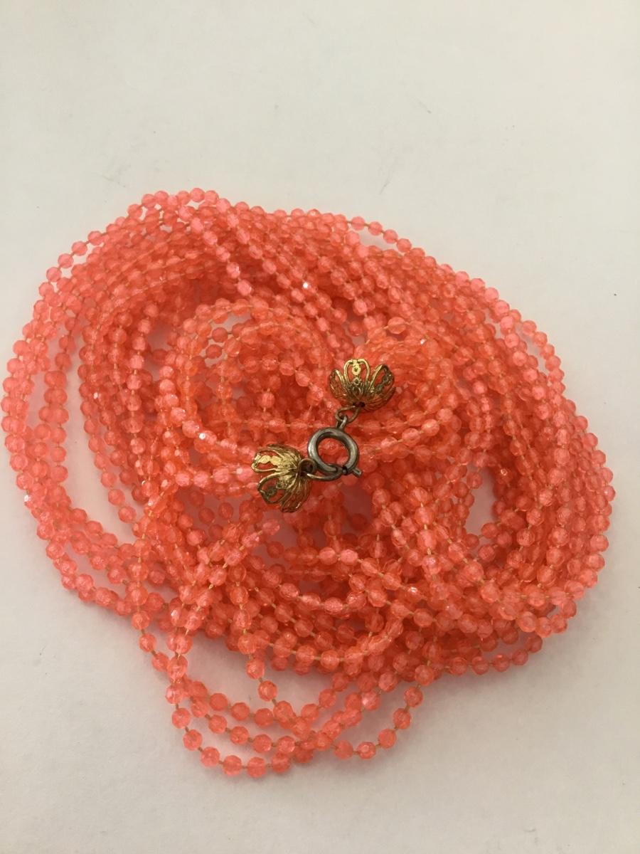 Vintage Multi, strand, coral, clear, beaded, flapper style necklace