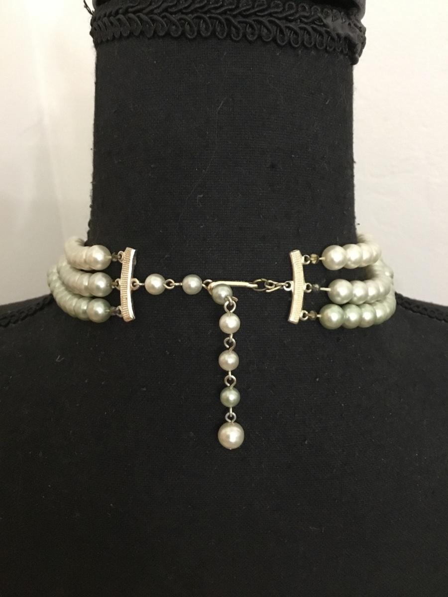 Vintage, multi, strand, light green faux, pearl choker necklace