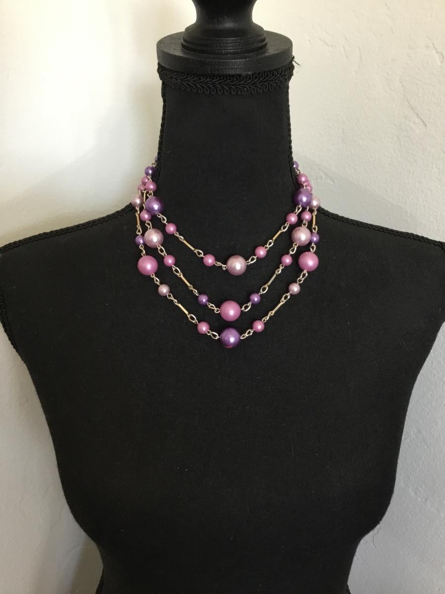 Vintage, multi, strand, light, pink and purple’s bead statement, necklace, vintage