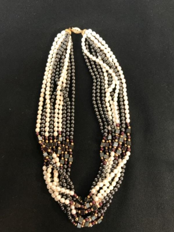 Vintage Multi Strand Necklace Water Pearls Black Beads
