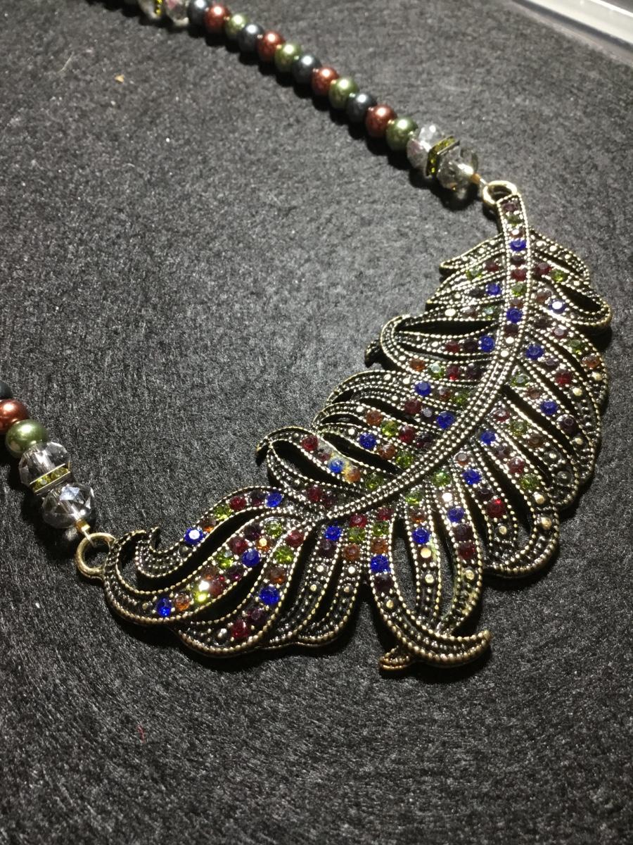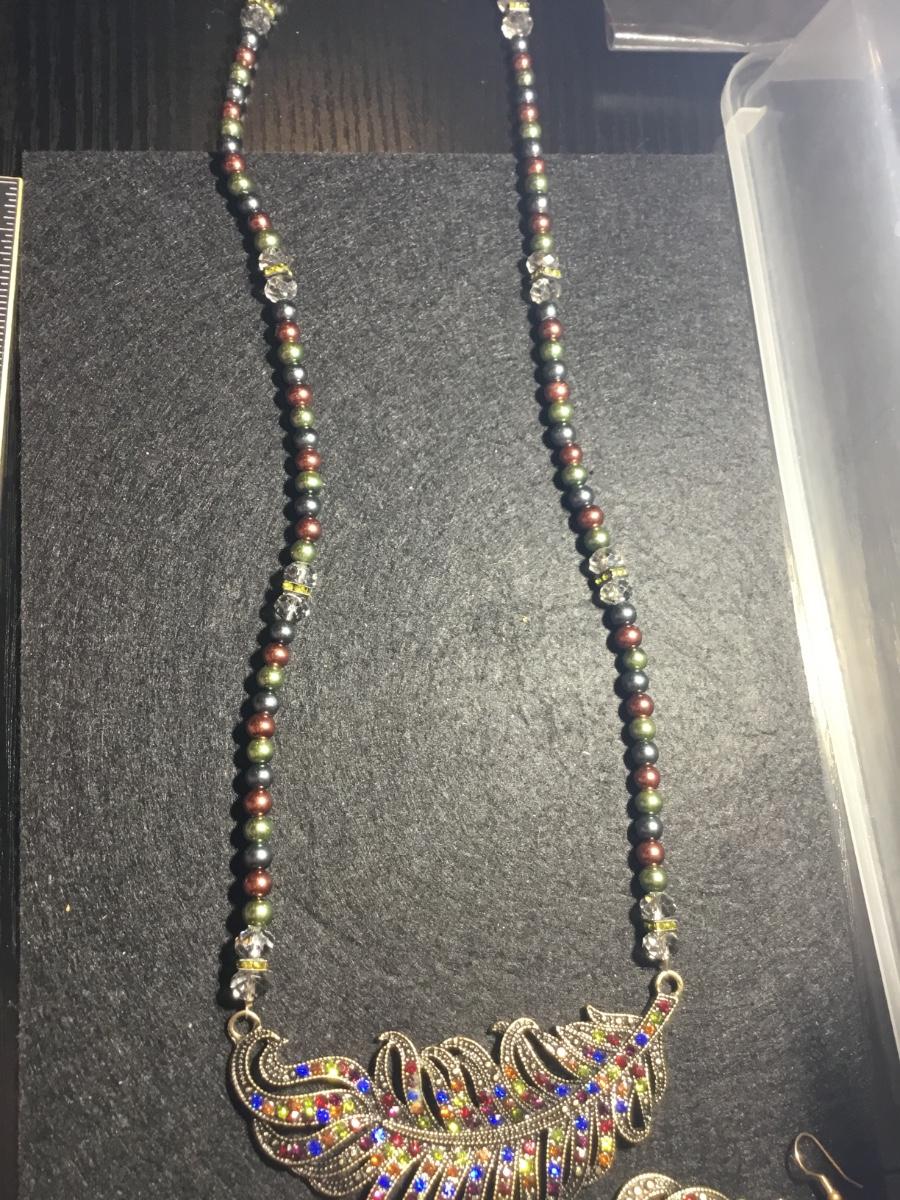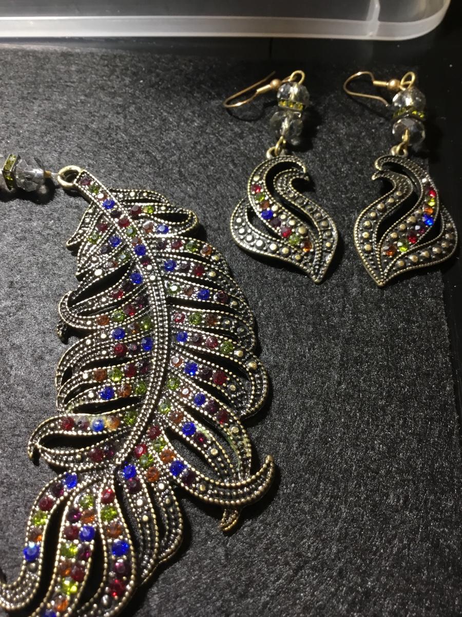 Vintage multicolor fashion feather necklace with multicolor matching earrings