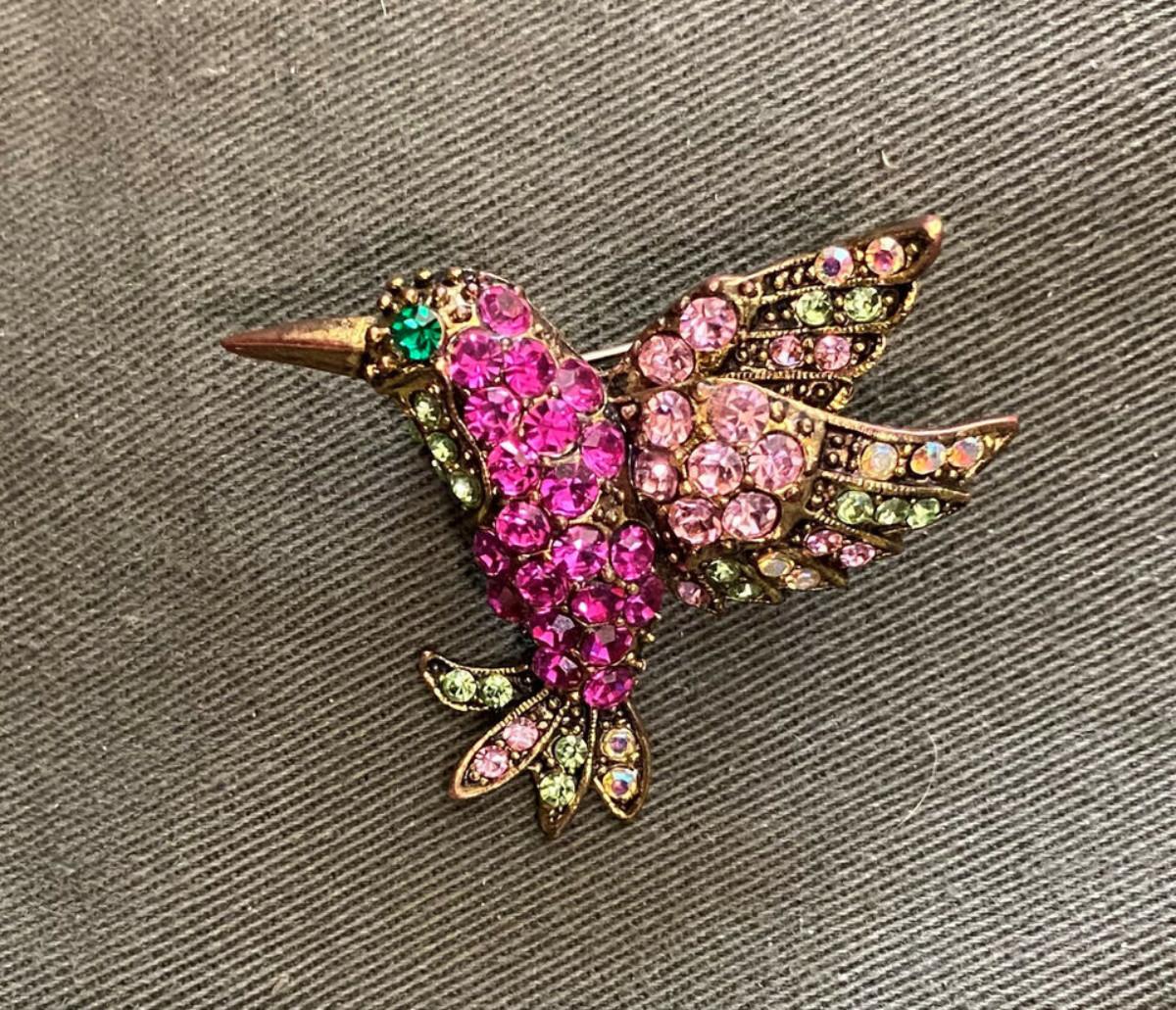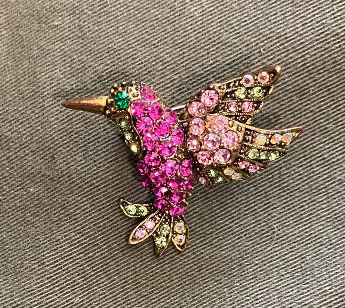 vintage MULTICOLOR RHINESTONE HUMMINGBIRD PIN