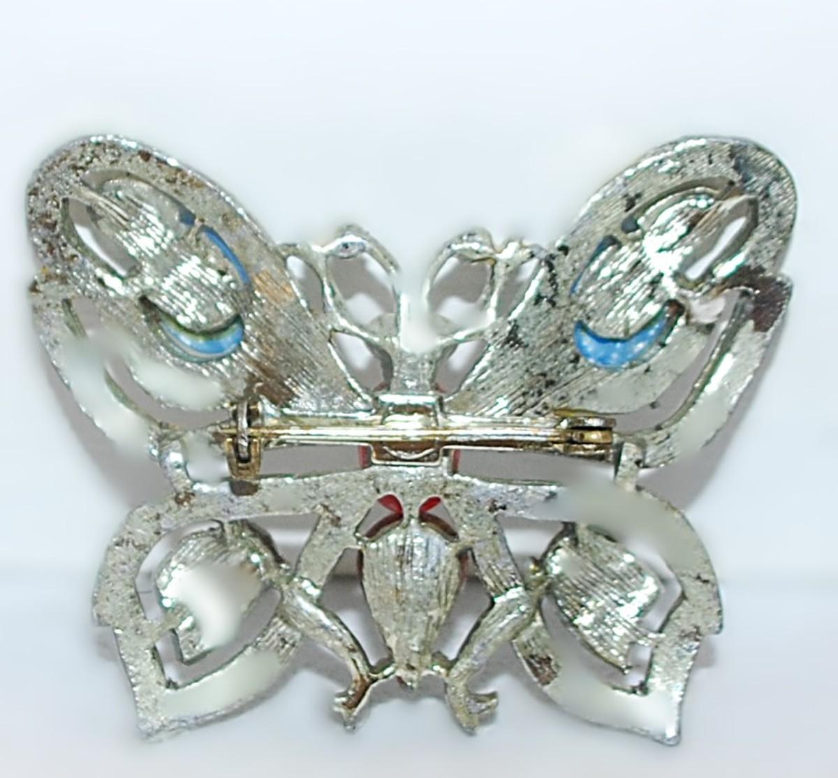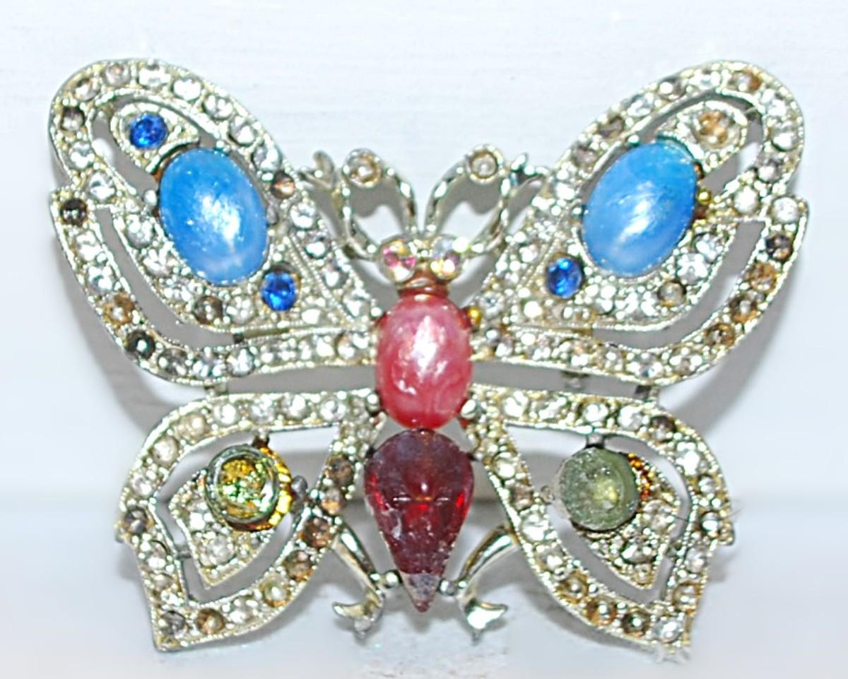 VINTAGE Multicolor Stones & Silver Colored BUTTERFLY BROOCH (2" x 1¾") on a Silver Tone Setting