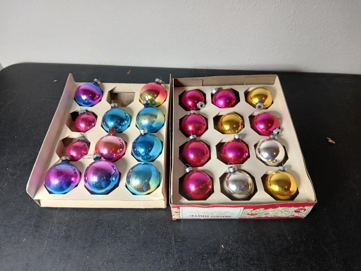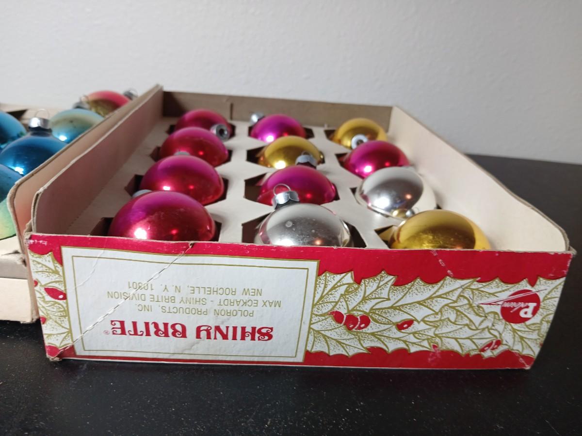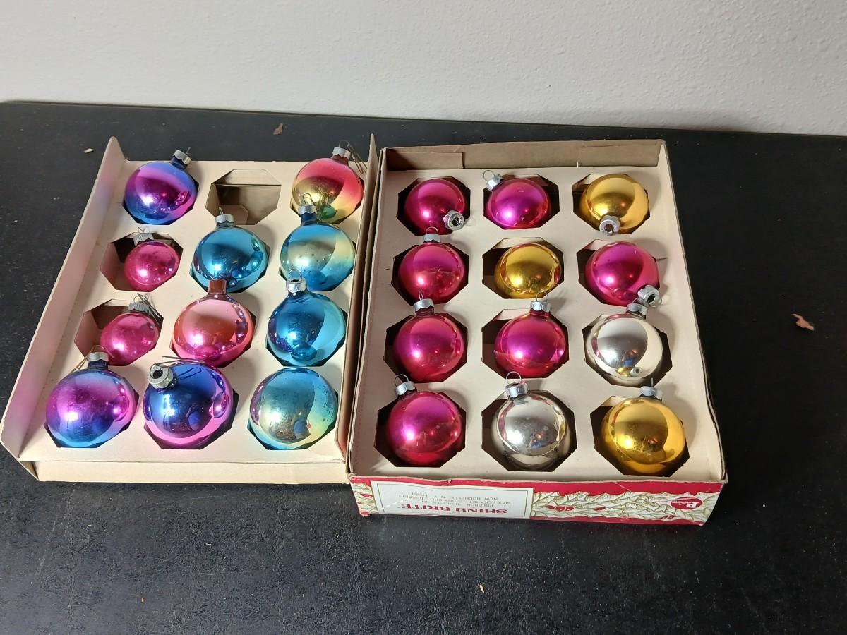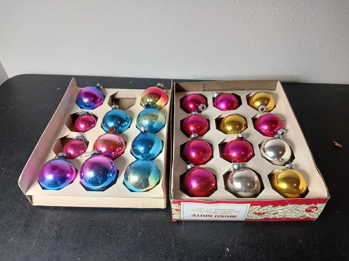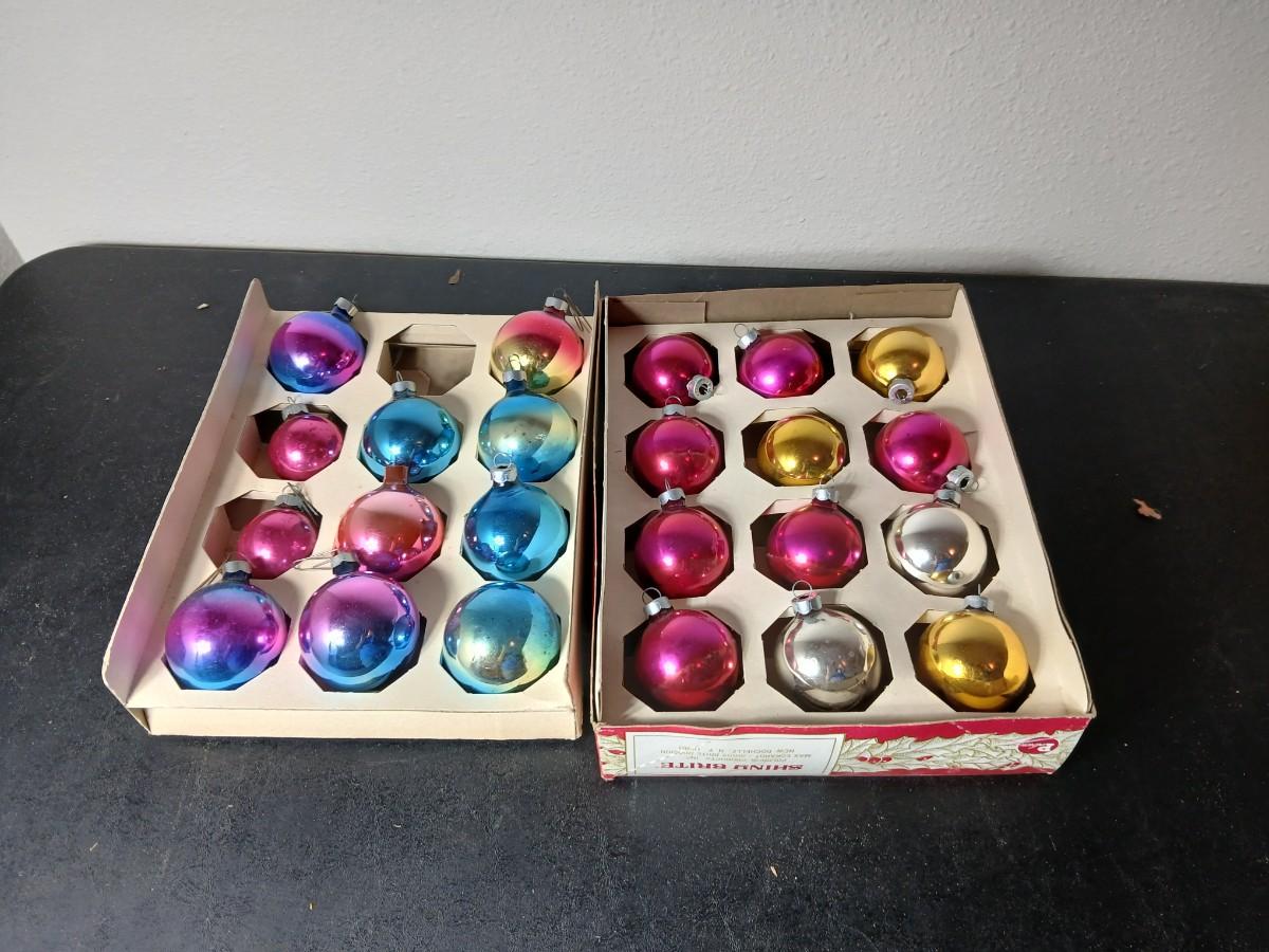 Vintage multi-colored and solid colored Shiny Brite Christmas ornaments