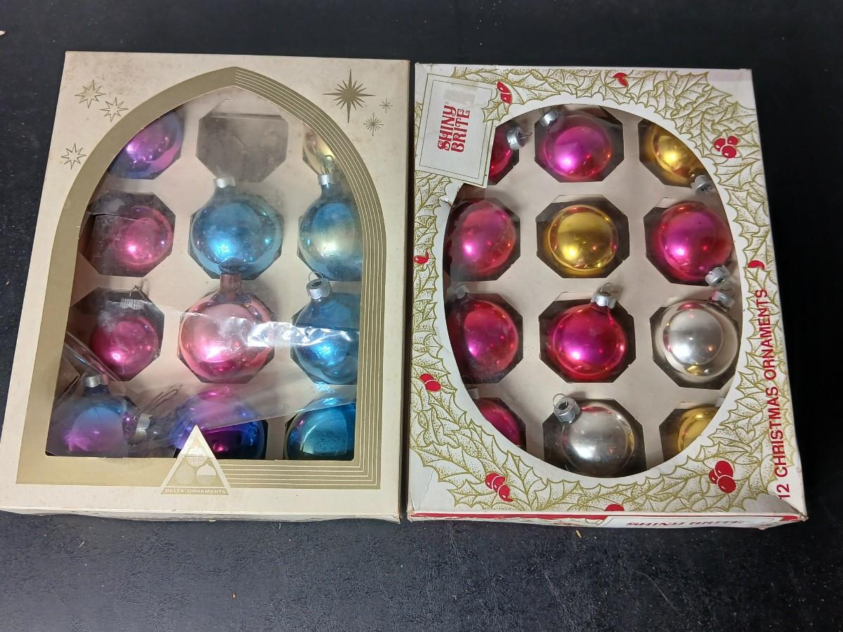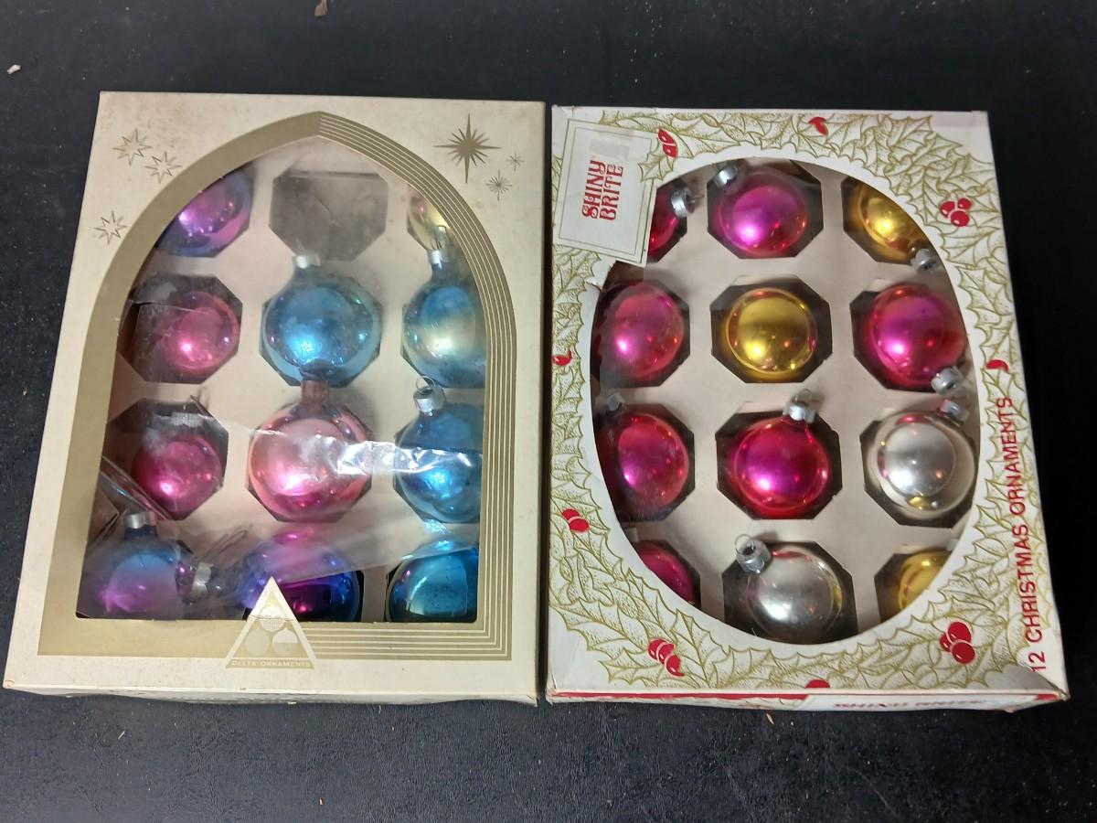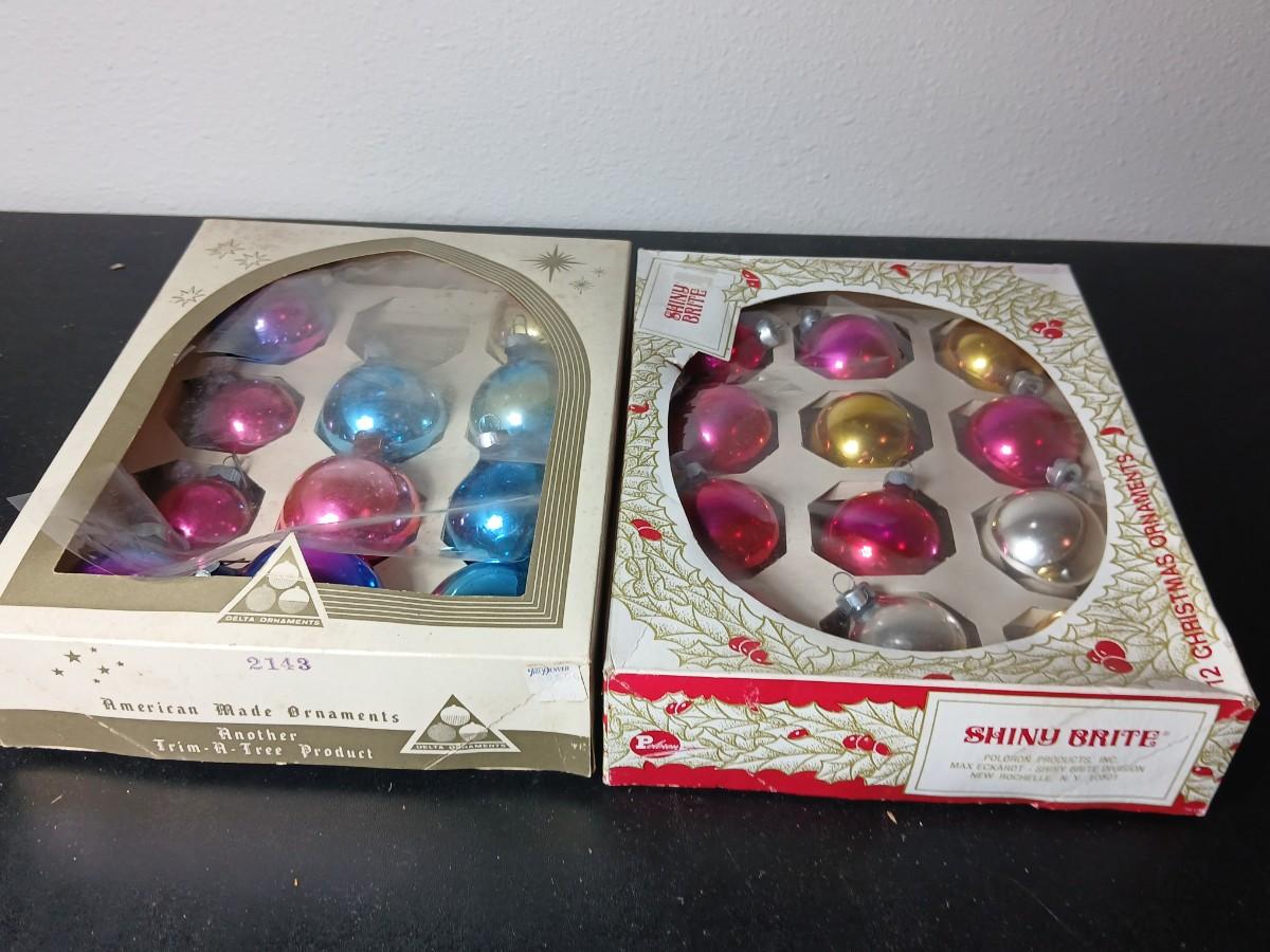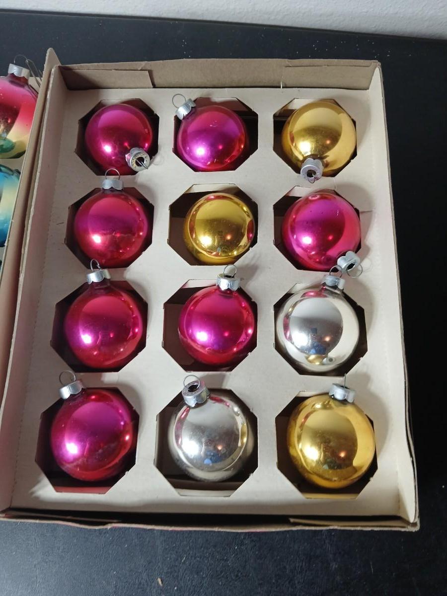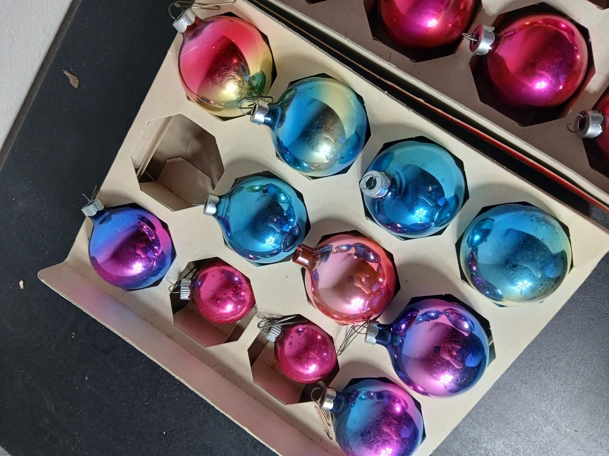 Vintage multi-colored and solid colored Shiny Brite Christmas ornaments