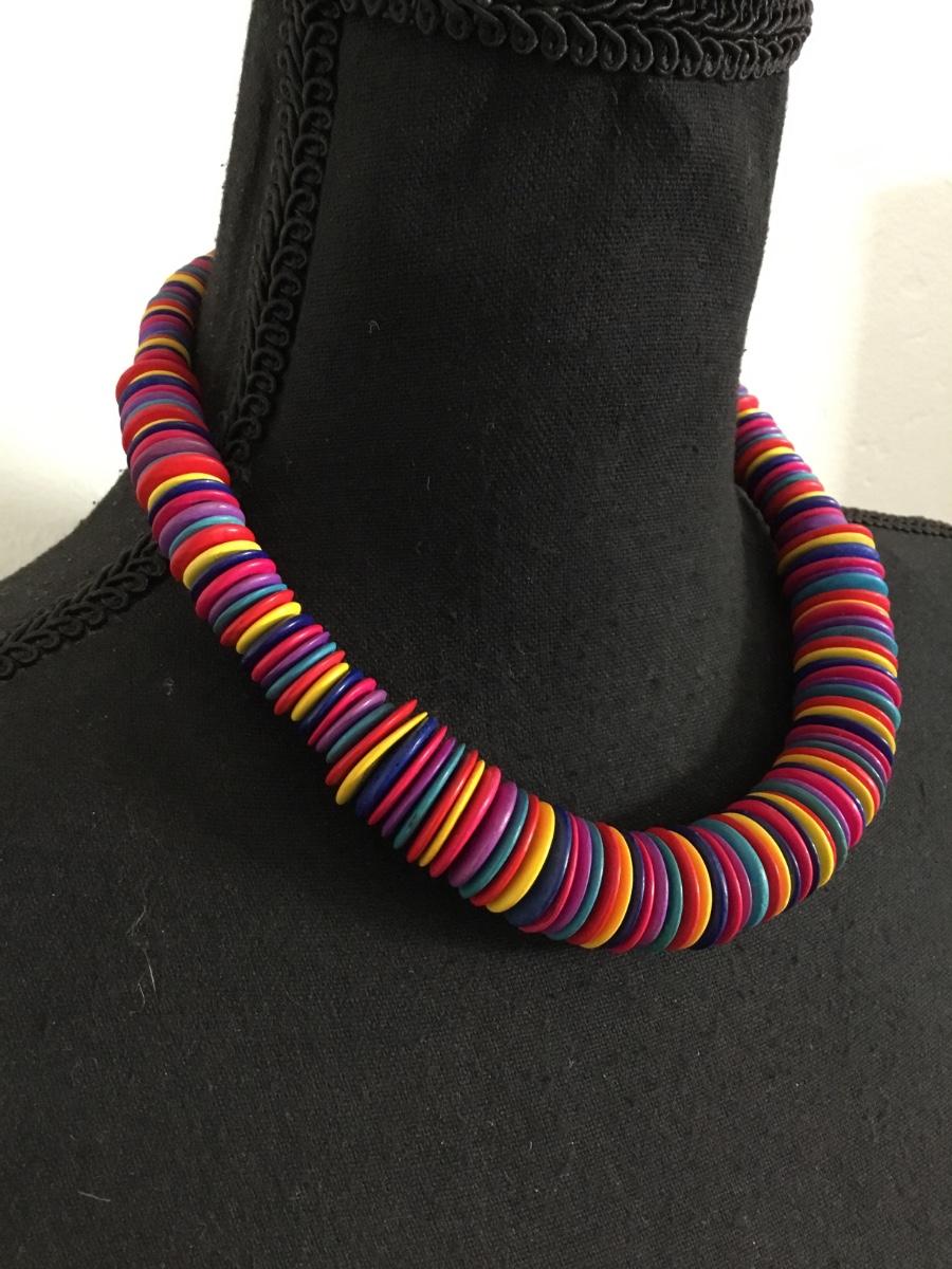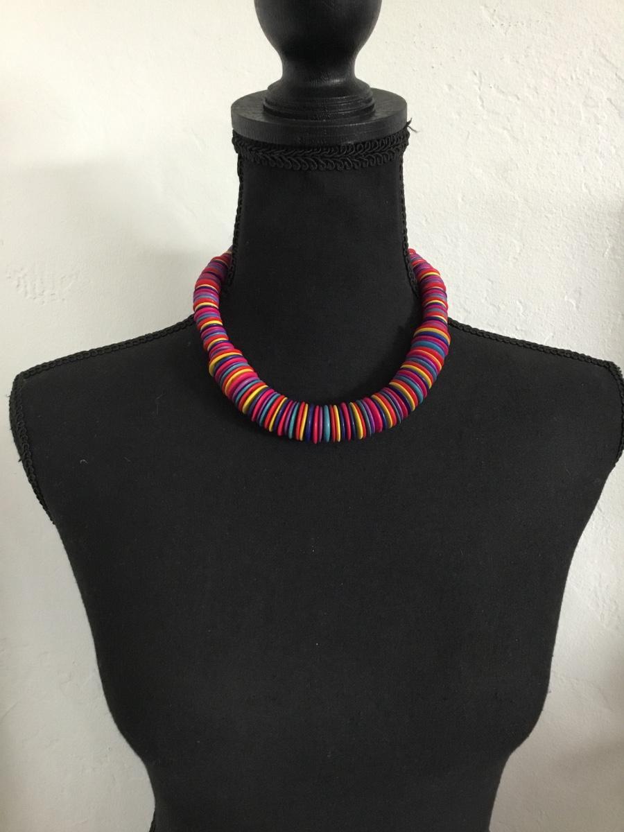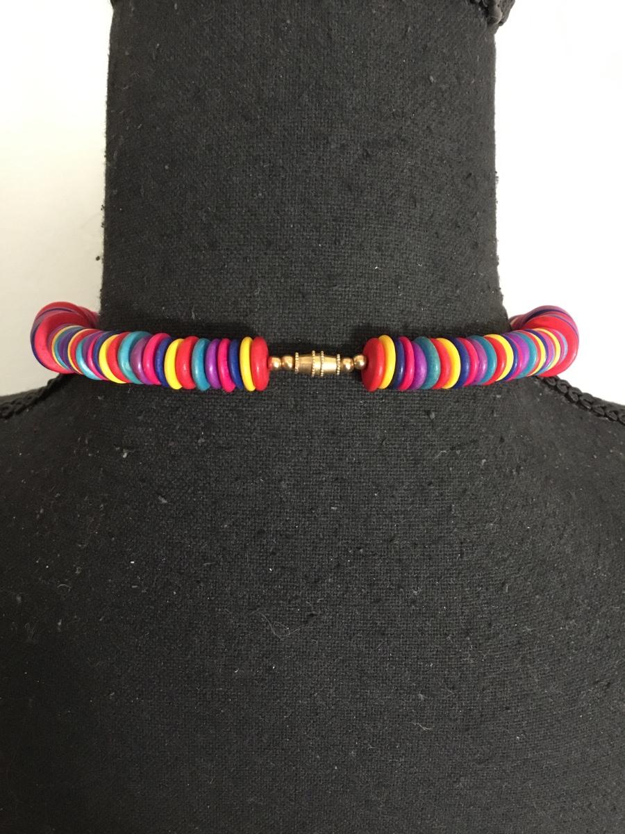 Vintage multicolored disc bead collar necklace