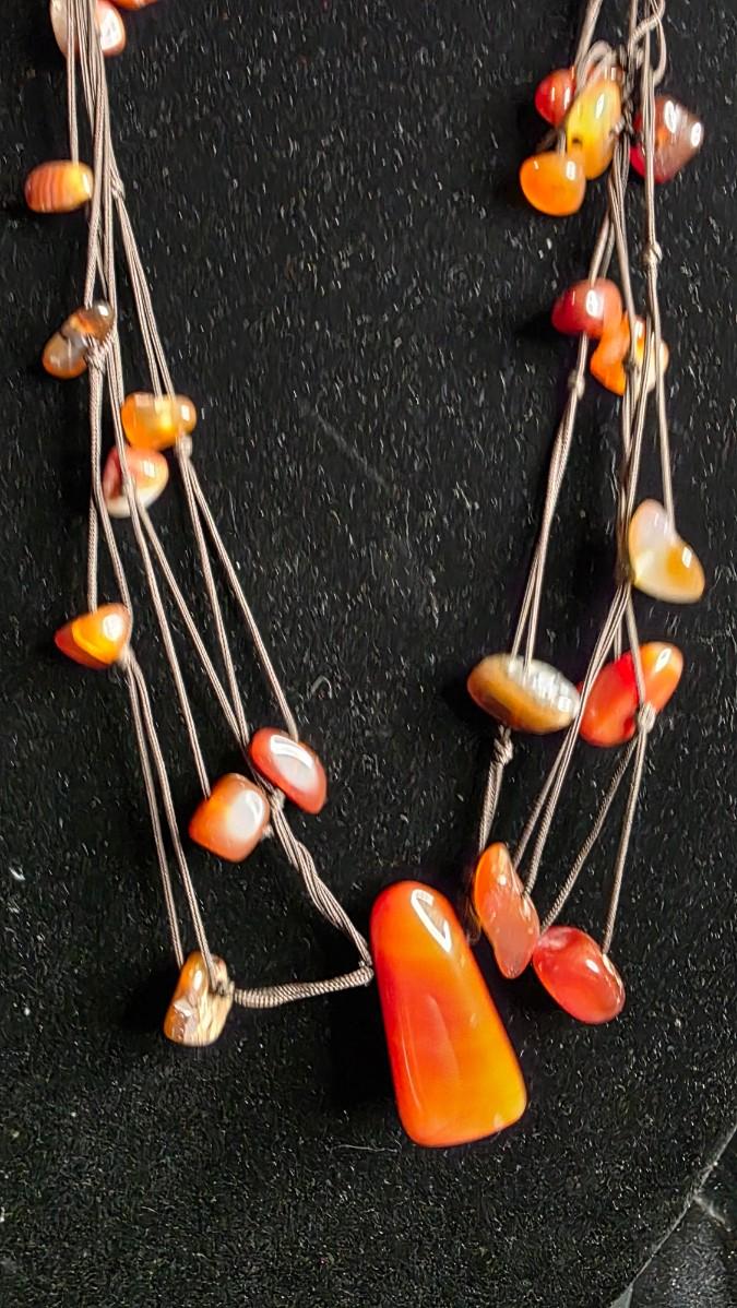 Imagine it layered against sun-kissed skin on a late-summer evening, the carnelian catching firelight like embers, or paired with linen and leather where it becomes a talisman of wanderlust and quiet strength. From the tradition of handcrafted bohemian jewelry, its colors remain rich and its knots secure, a piece that turns the neck into a canvas of natural splendor.