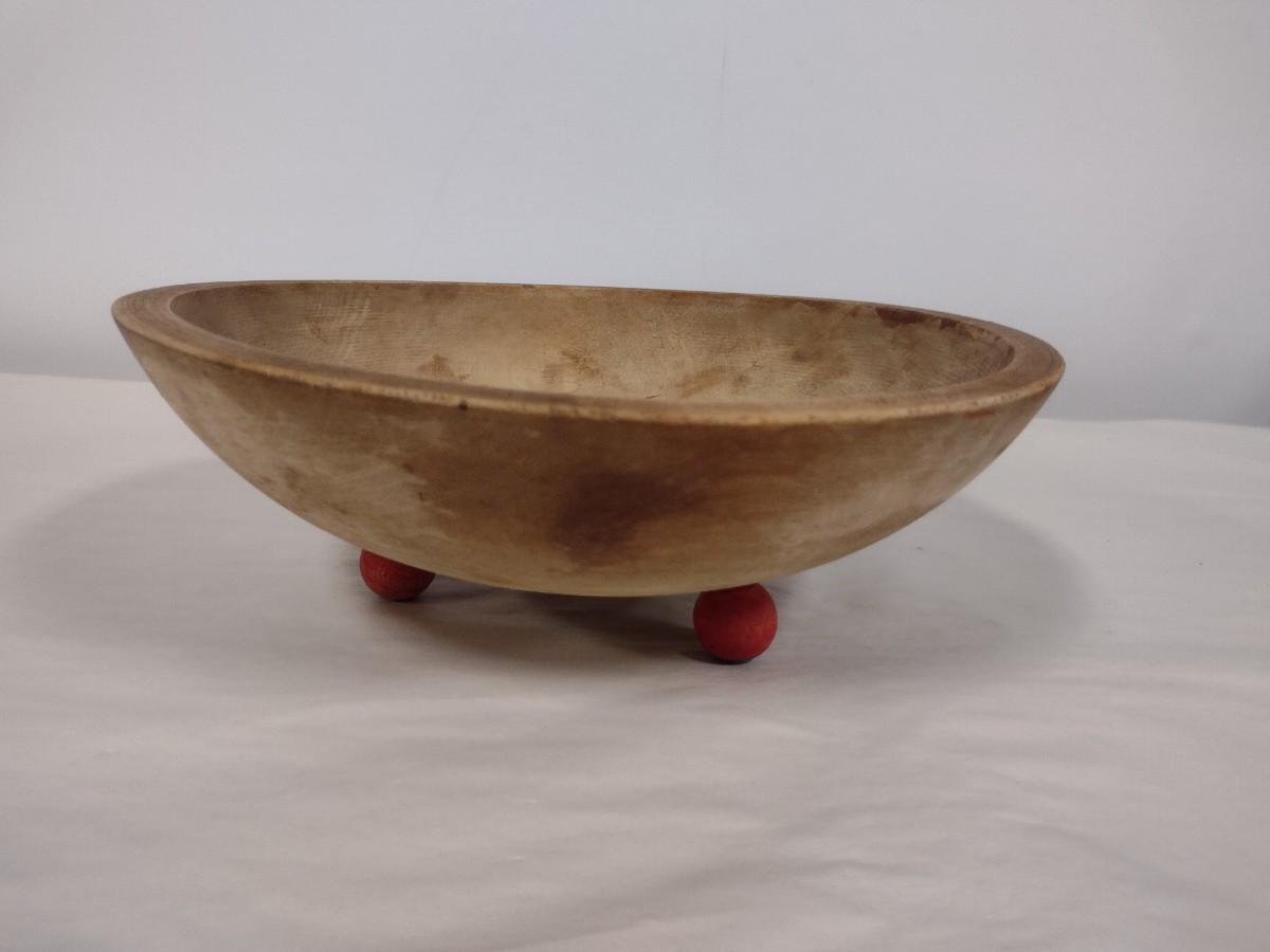 Vintage Munising Dough Bowl with Round Ball Feet. Nearly 11 ½" across.