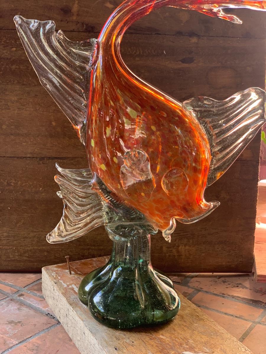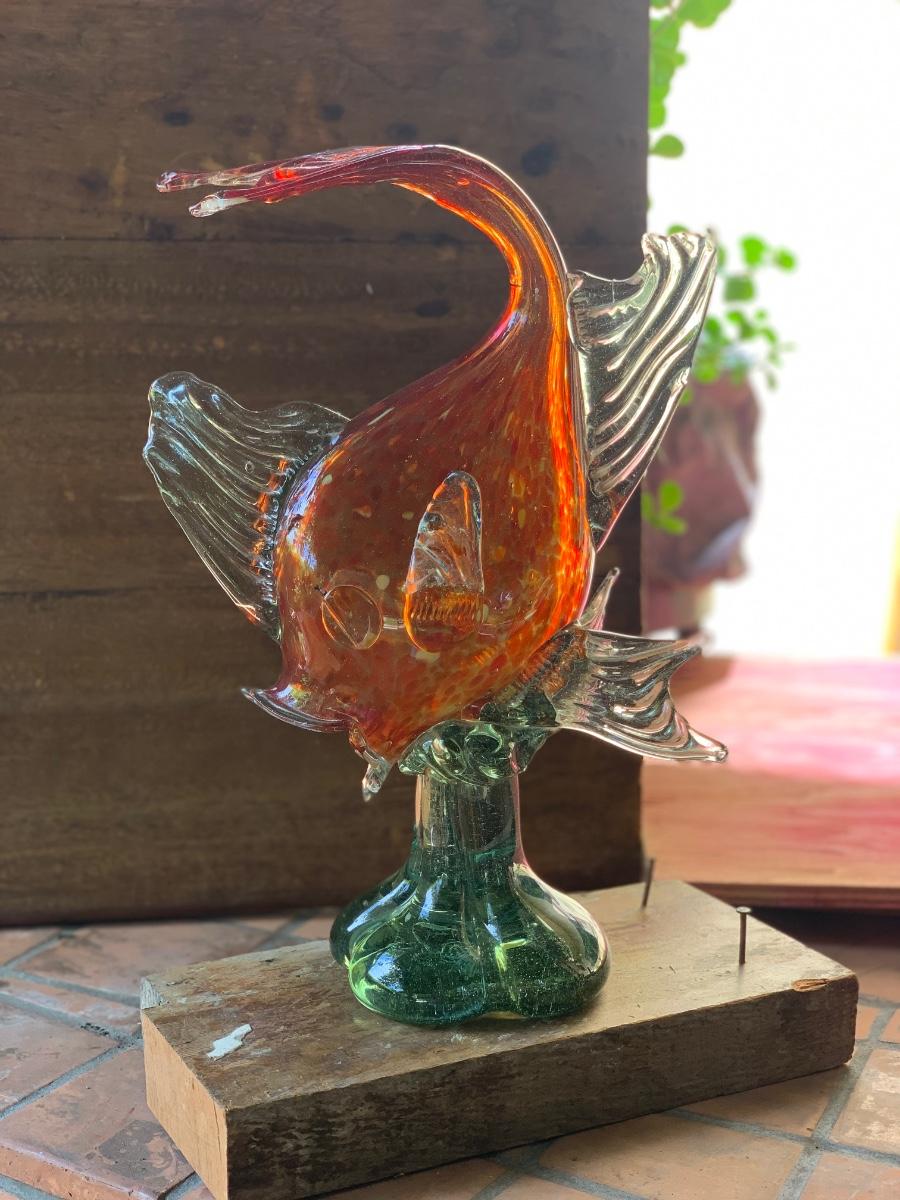 Glass fish on pedestal