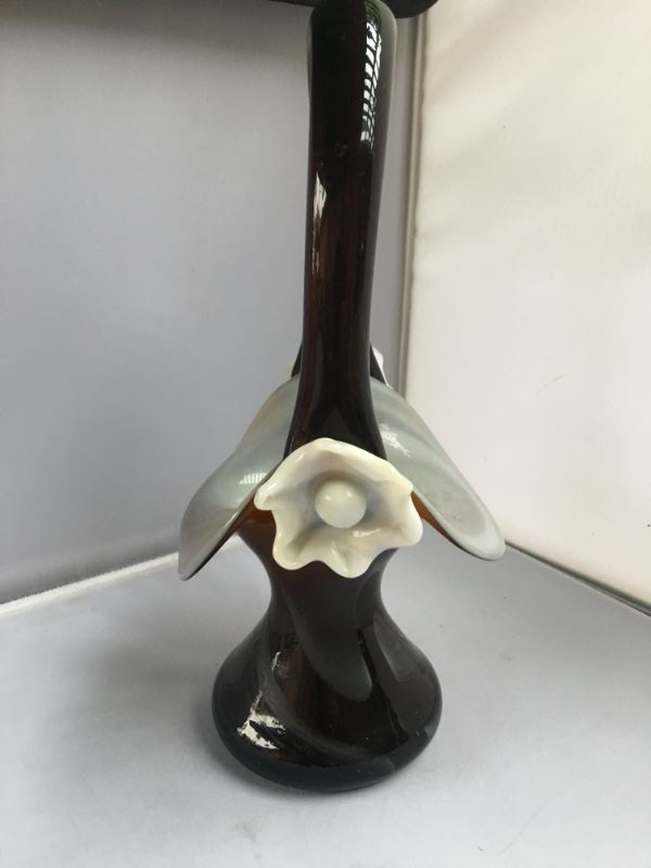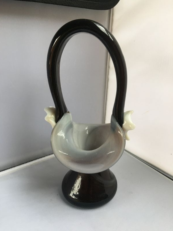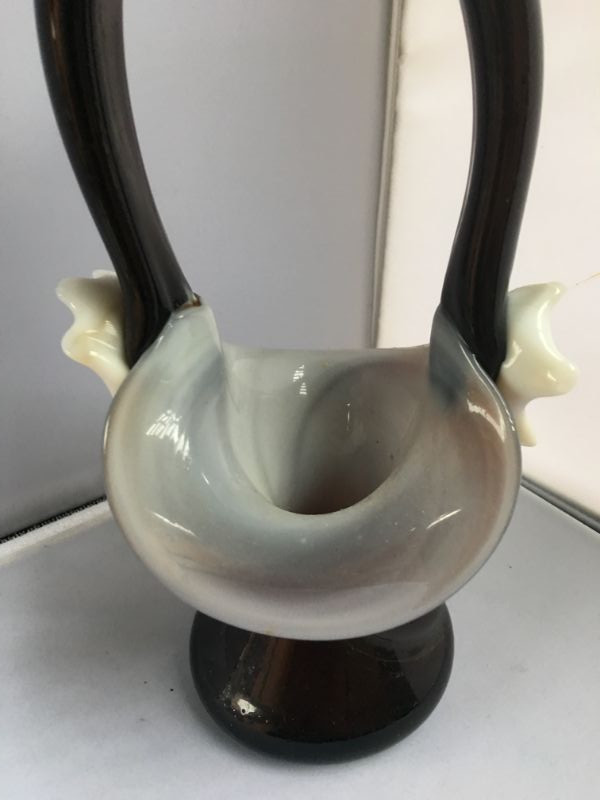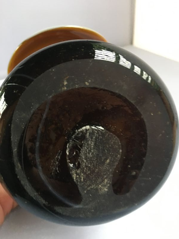 Dark yellow and white white superb design at the handles measuring in height 9.5" X 5".