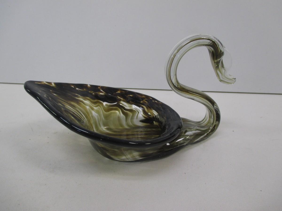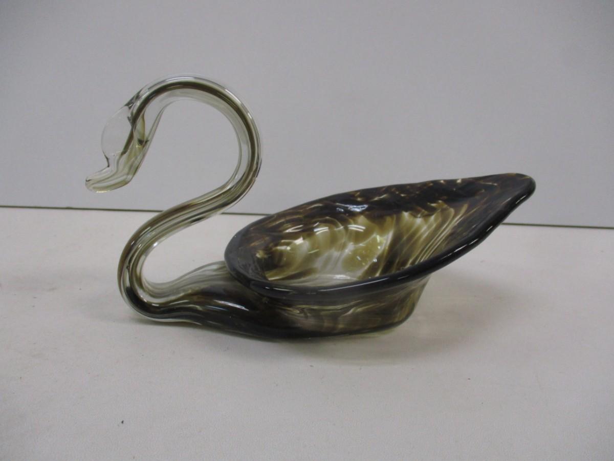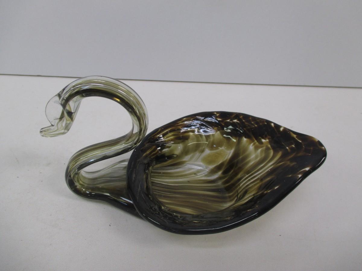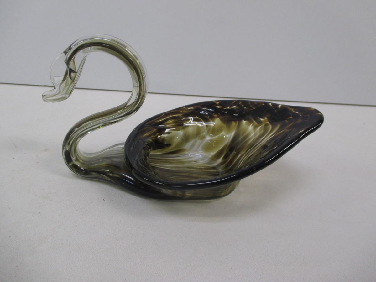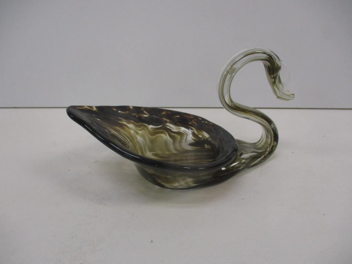 Vintage Murano Hand Blown Light Olive Glass Swan