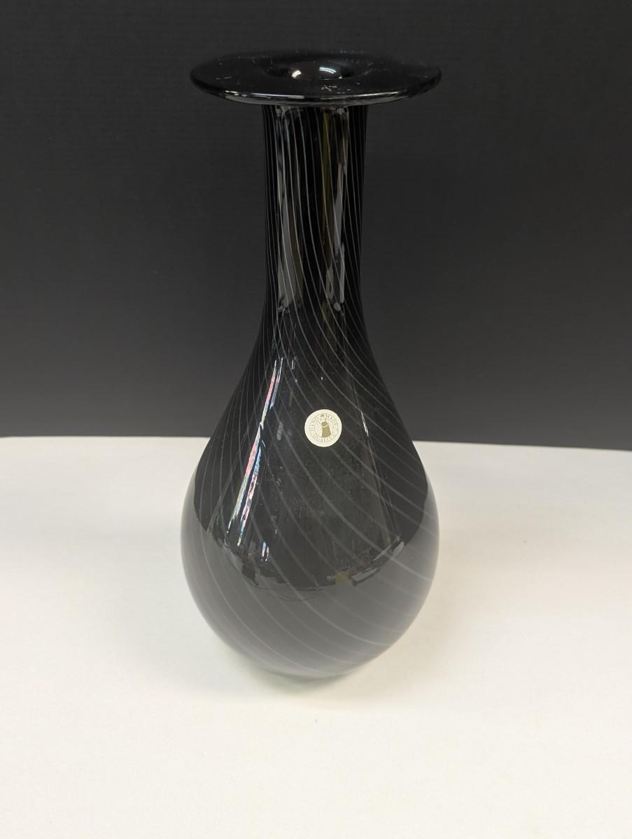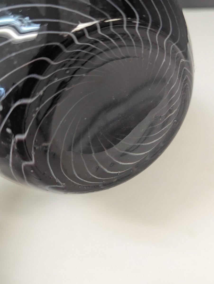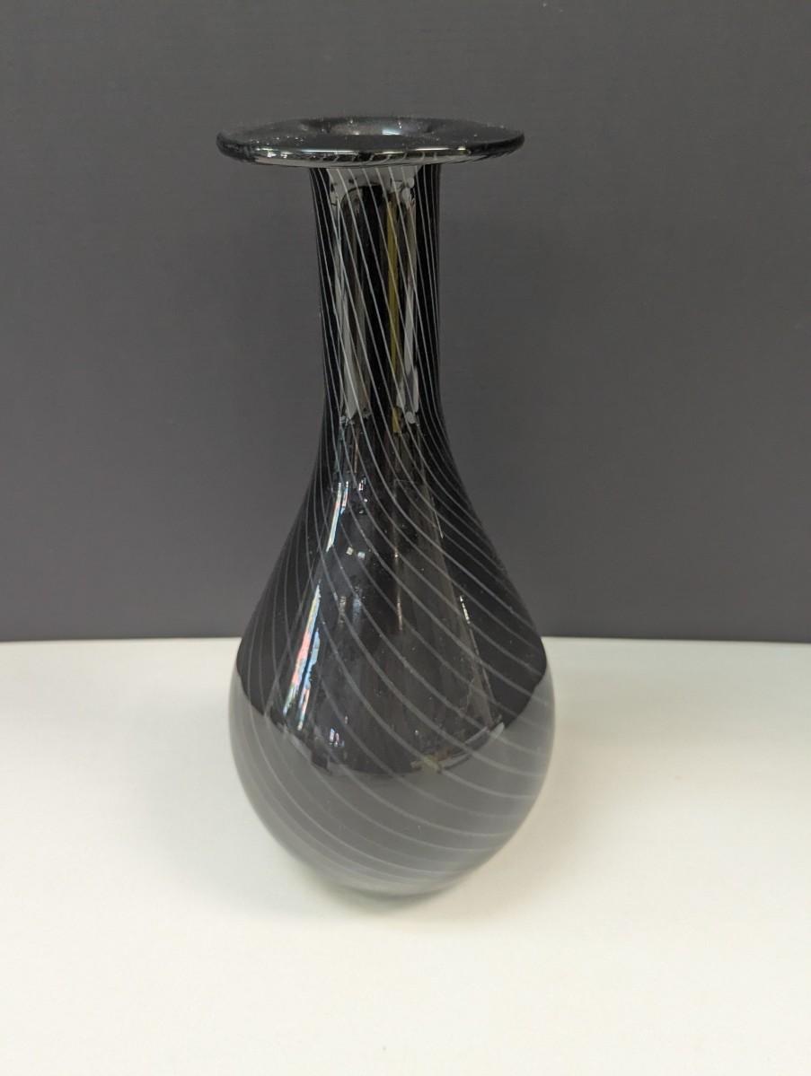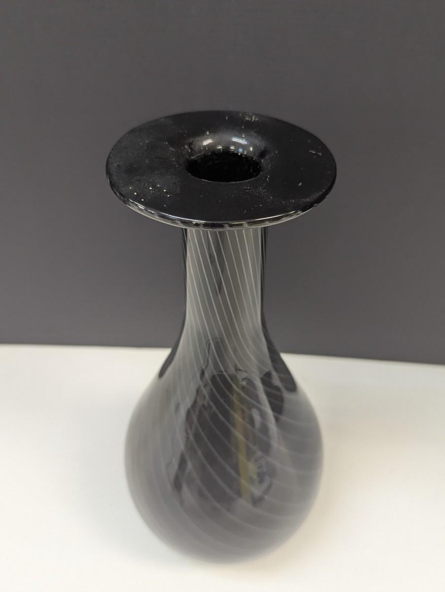 Vintage Murano Style Glass Hand Blown Black, Gray White Twisted Swirls