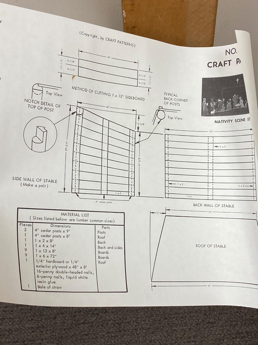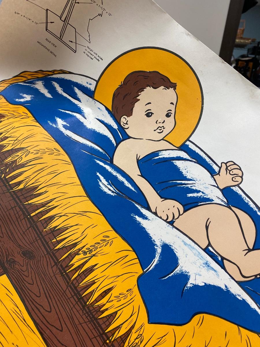 Vintage set of Christmas Nativity scene artwork for cutouts by Muriel Spears. Cutout art with instructions and diagrams for building Nativity scene. Not sure how complete the set is but the box is pretty full.