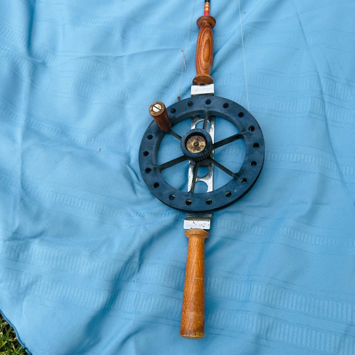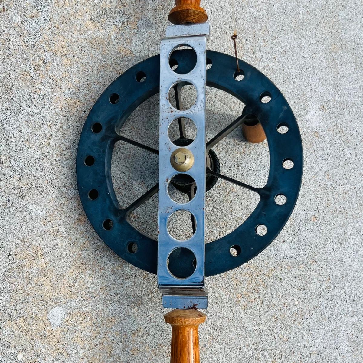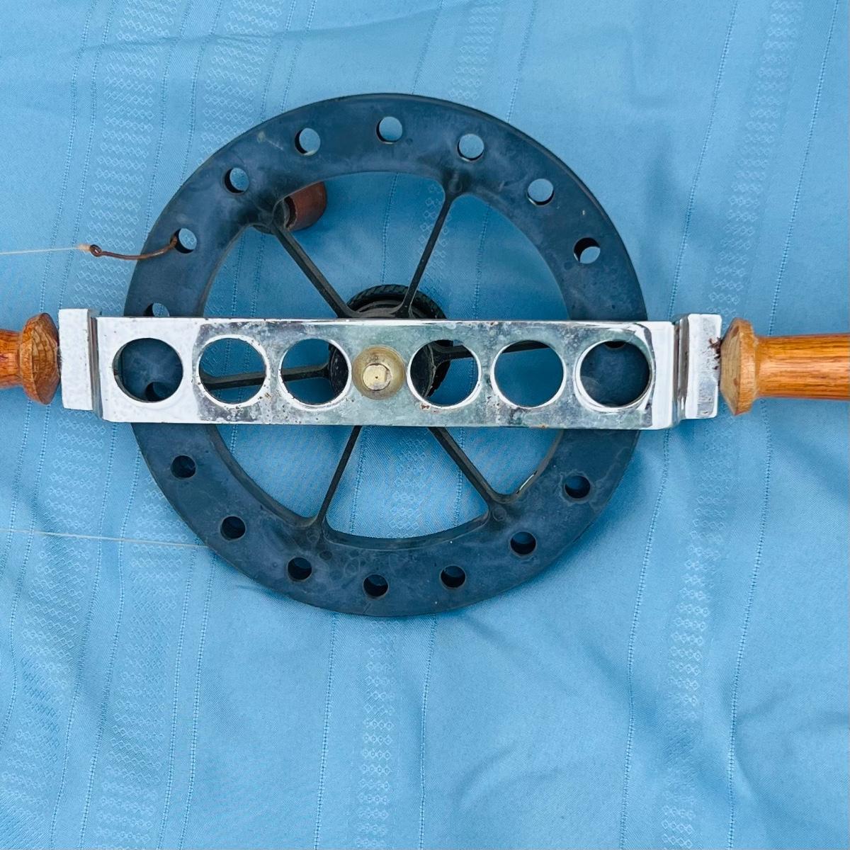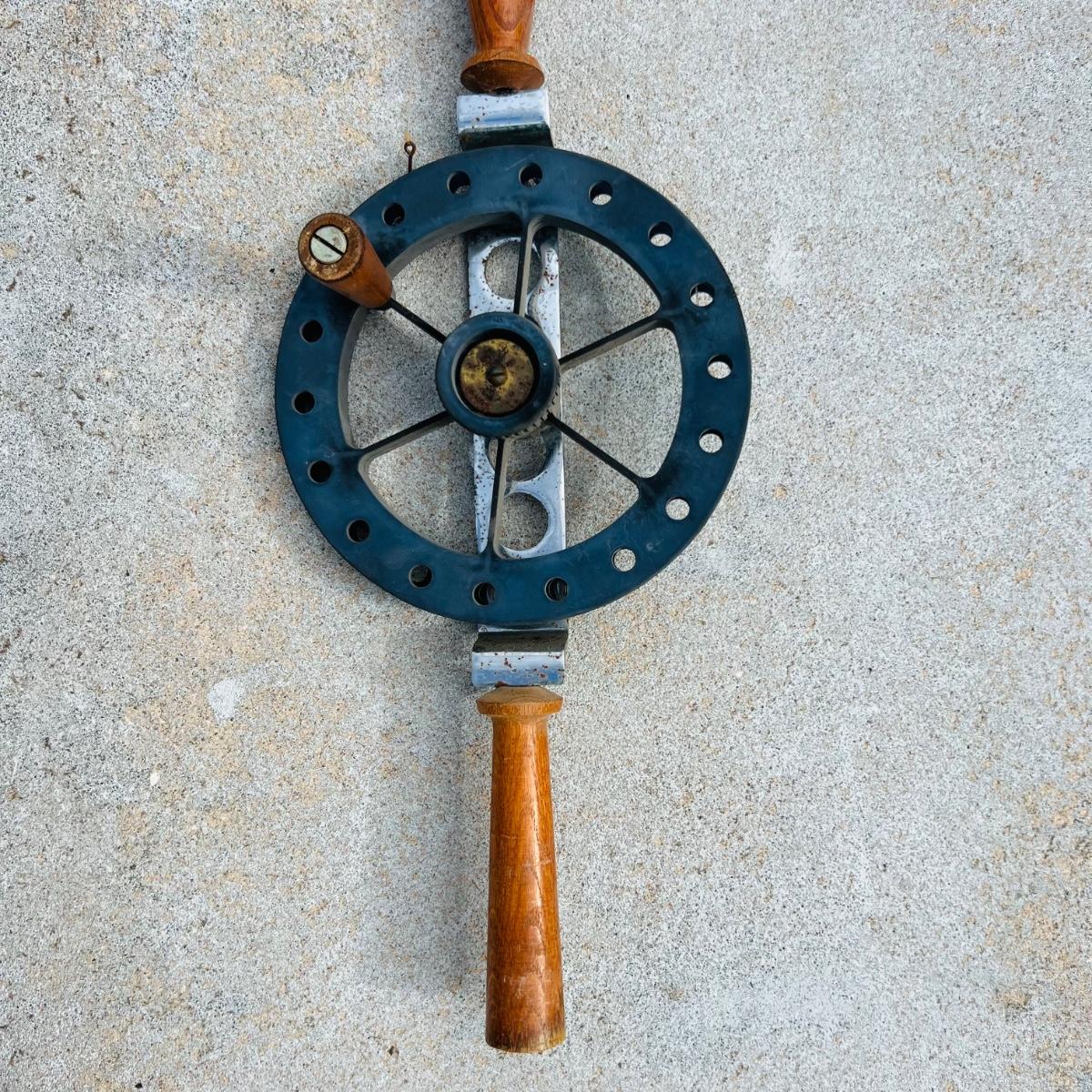 81” Vintage Murphy rod and reel with wood handles. Some spots of rust but in overall good condition.