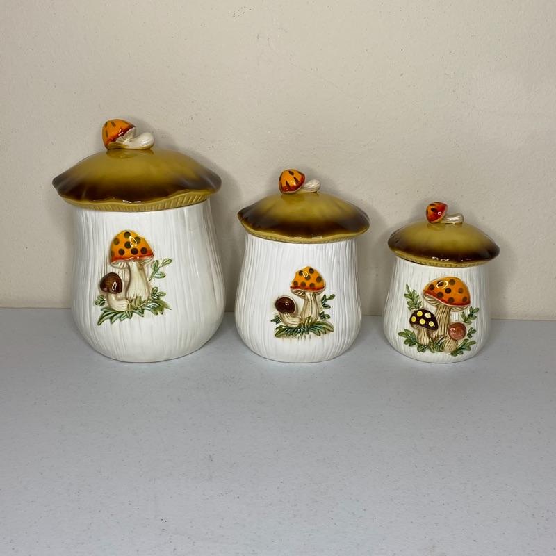 Vintage Canister Mushroom Trio - Sears & Roebuck