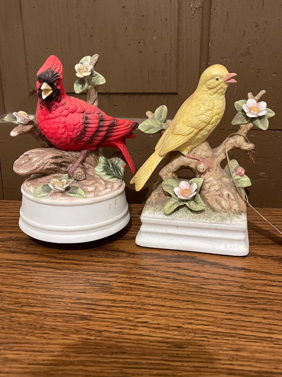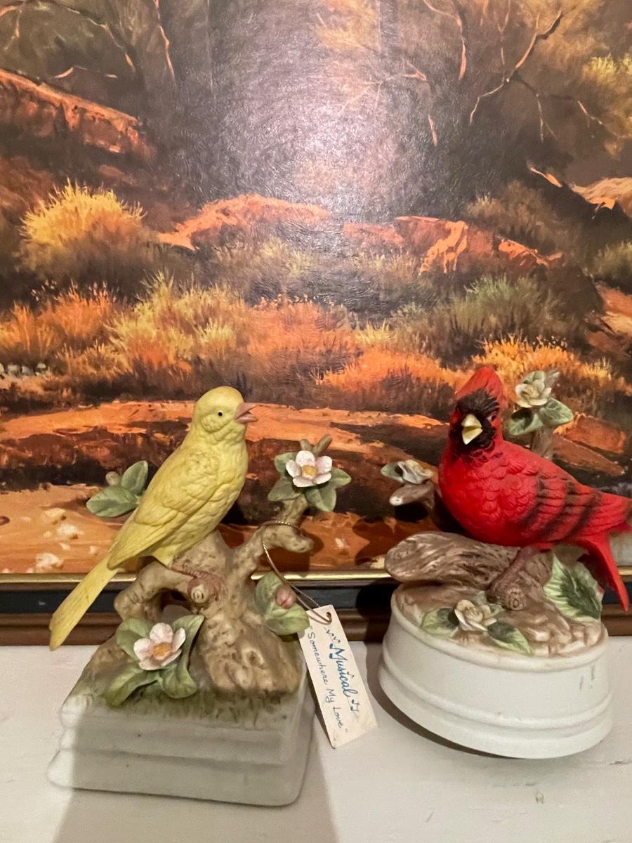 For the bird lover- 2 pretty specimens and each music box plays. The cardinal is a little slow but it does work. Cardinals hold a special meaning to so many, If you know someone- grab these and gift the cardinal, or keep for yourself. These would be pretty anywhere in the home!