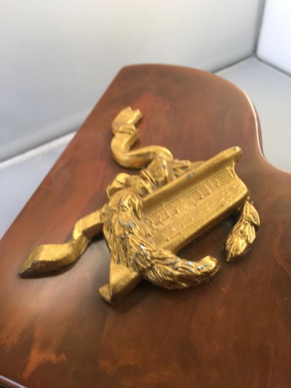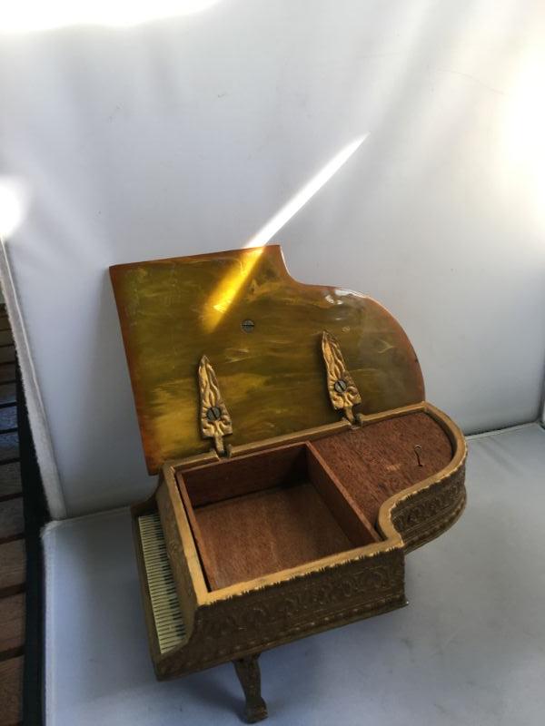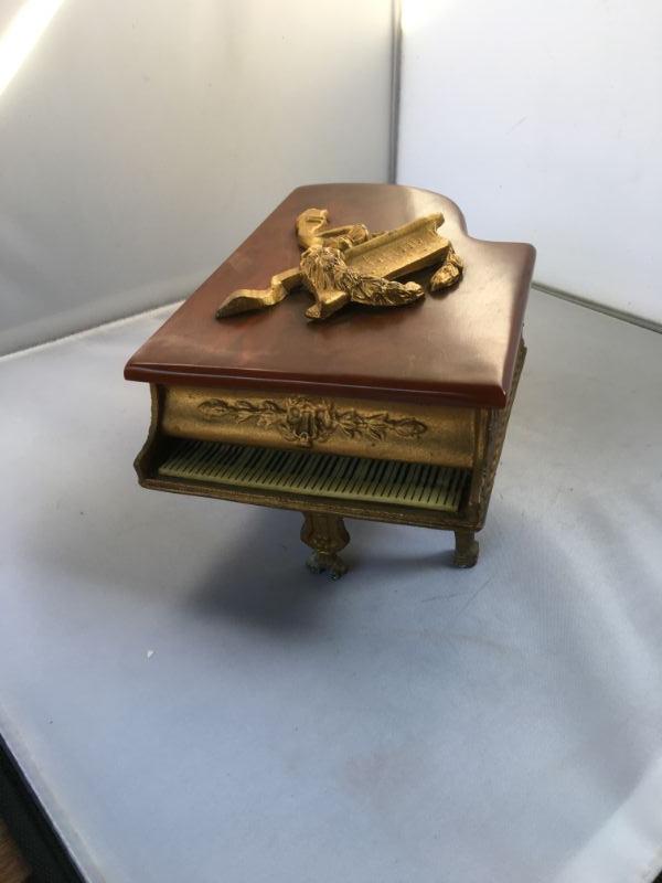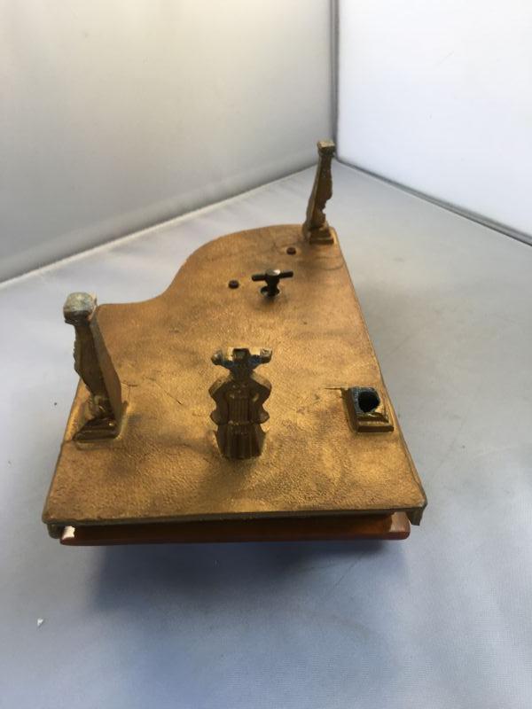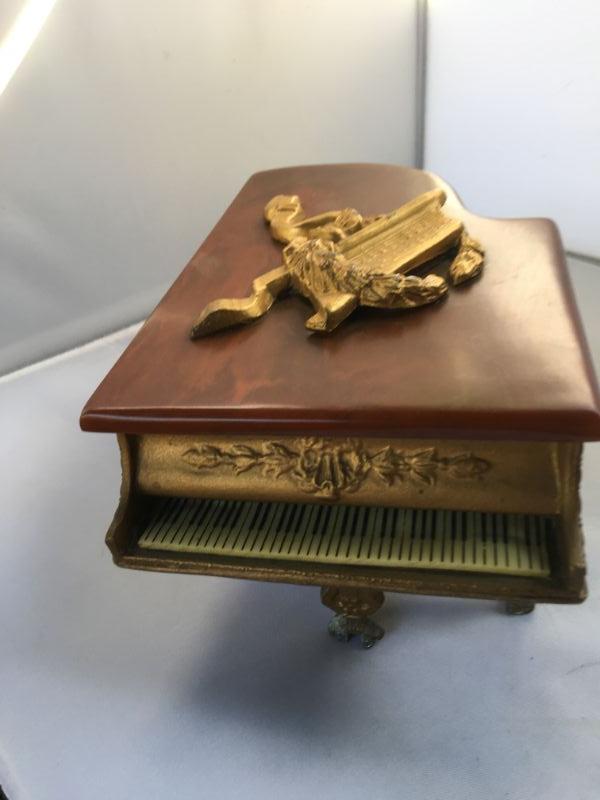 Missing one leg but stand very well and it plays music 8.5" X 5" X 4".great. Measures