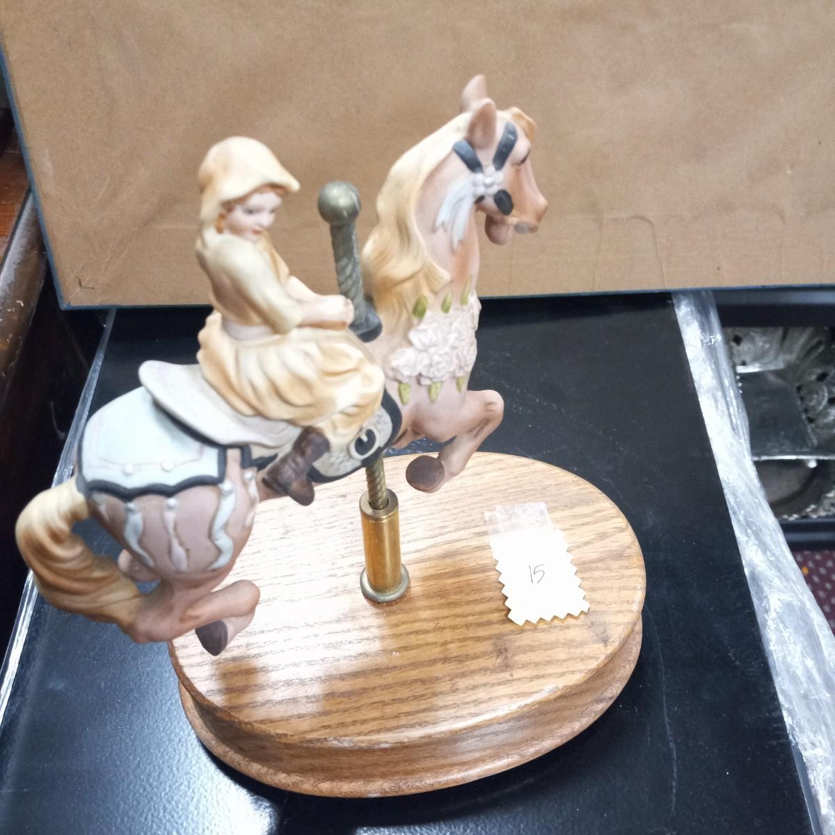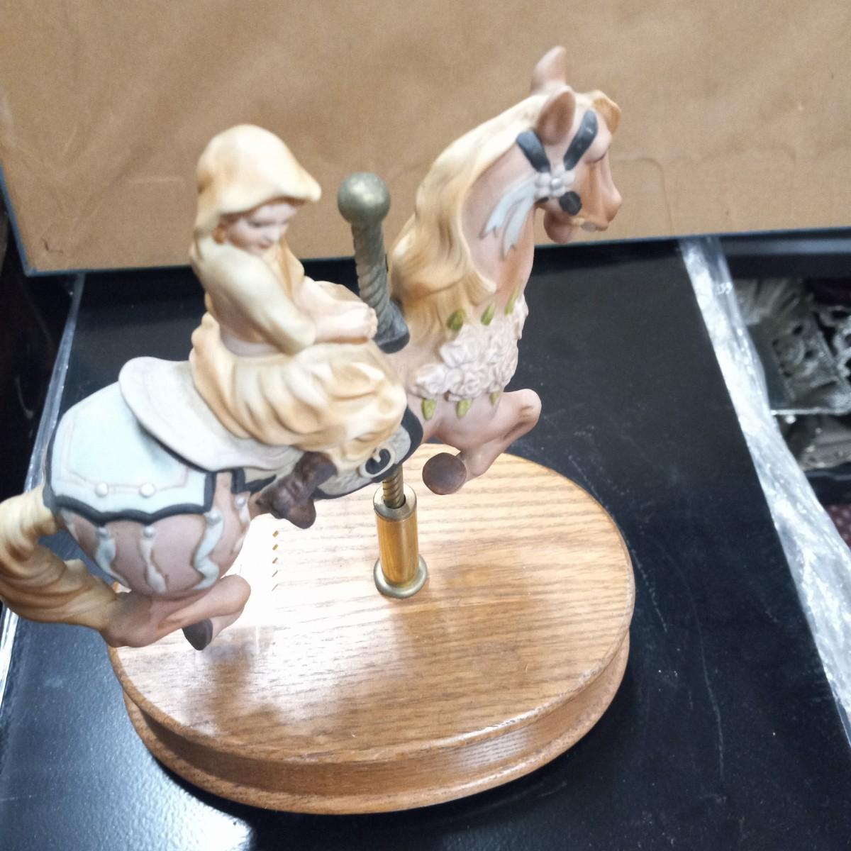 Vintage Musical Horse and  Girl Carousel Figurine
